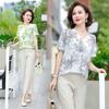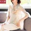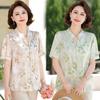 Camiseta de gasa de manga corta para madre, elegante camisa de verano 2024, traje de moda para mujeres de mediana edad y mayores.
