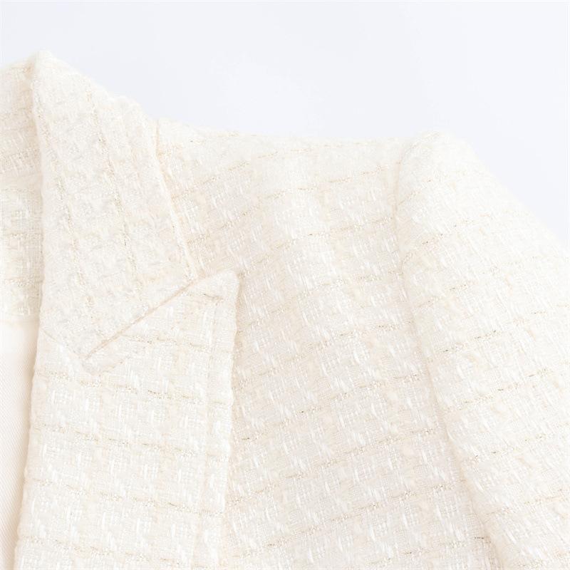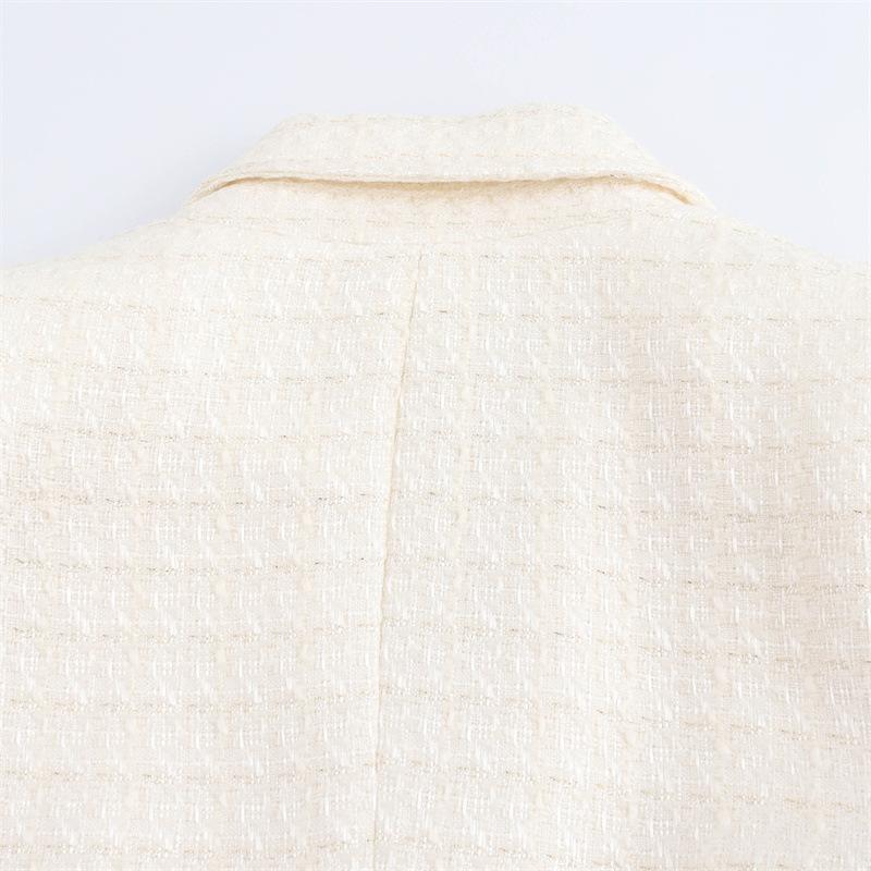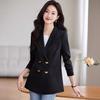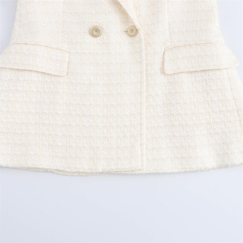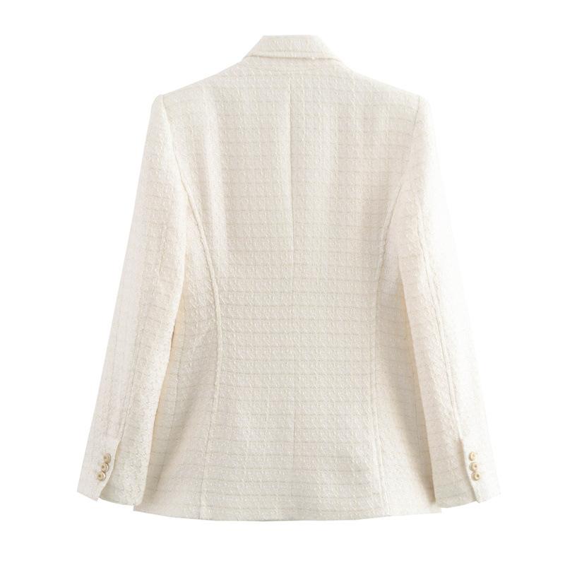 Traje elegante de mujer para ir al trabajo, de manga larga y cruzado, estilo europeo y americano, otoño de 2024, con chaqueta flameada sencilla.