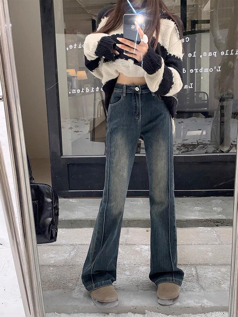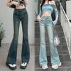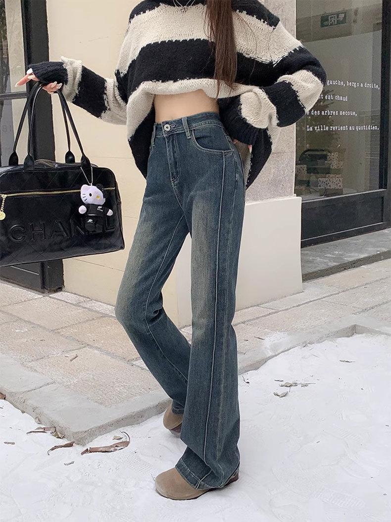 Pantalones vaqueros micro con diseño de costuras Sense para mujer, elásticos, de cintura alta, ajustados, azules y grises, rectos, con diseño de herradura y trompeta.
