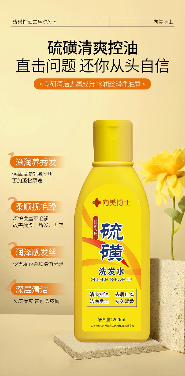 Dr. Champú de azufre con agua termal de Xiang Mei, limpieza suave, aceite anticaspa, lavado suave y esponjoso, venta al por mayor de fábrica