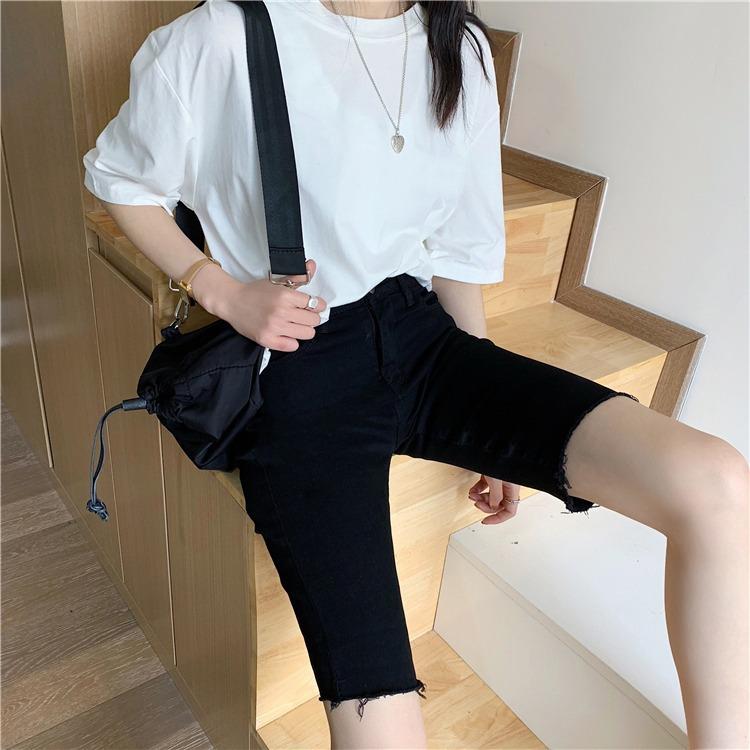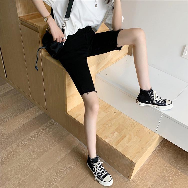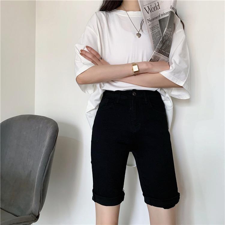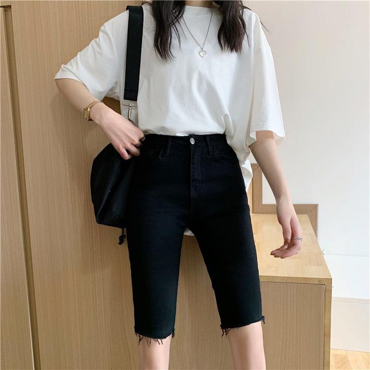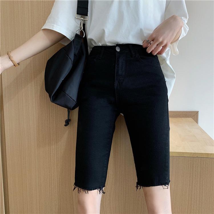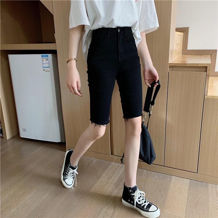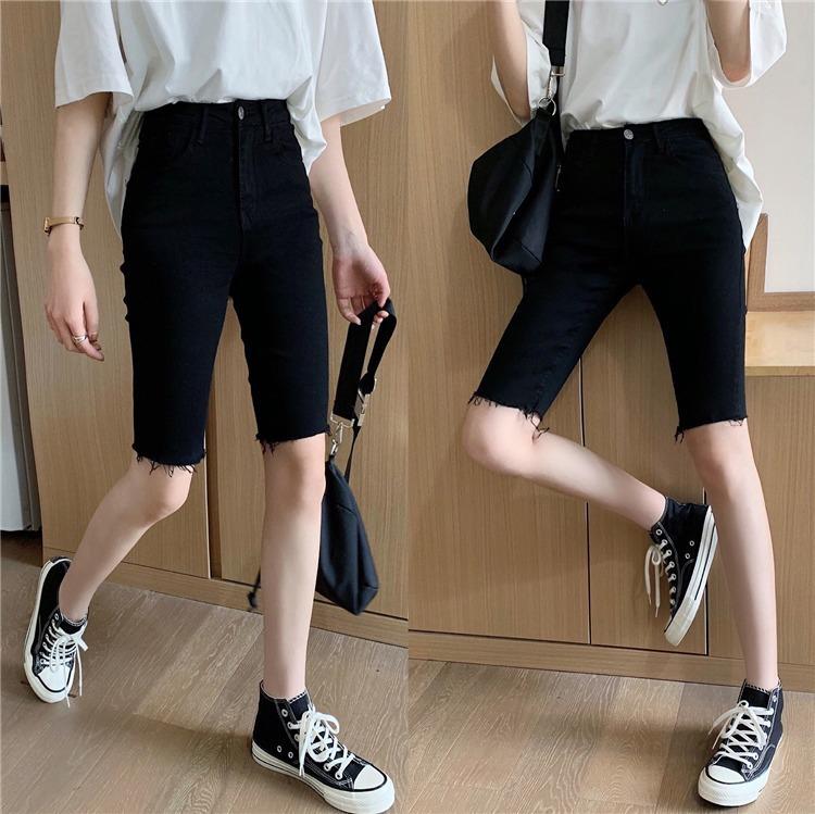 Pantalones de mezclilla negros para mujer Verano 2022 Nuevos Shorts de cintura alta Pantalones de chica sexy Pantalones de montar ajustados elásticos