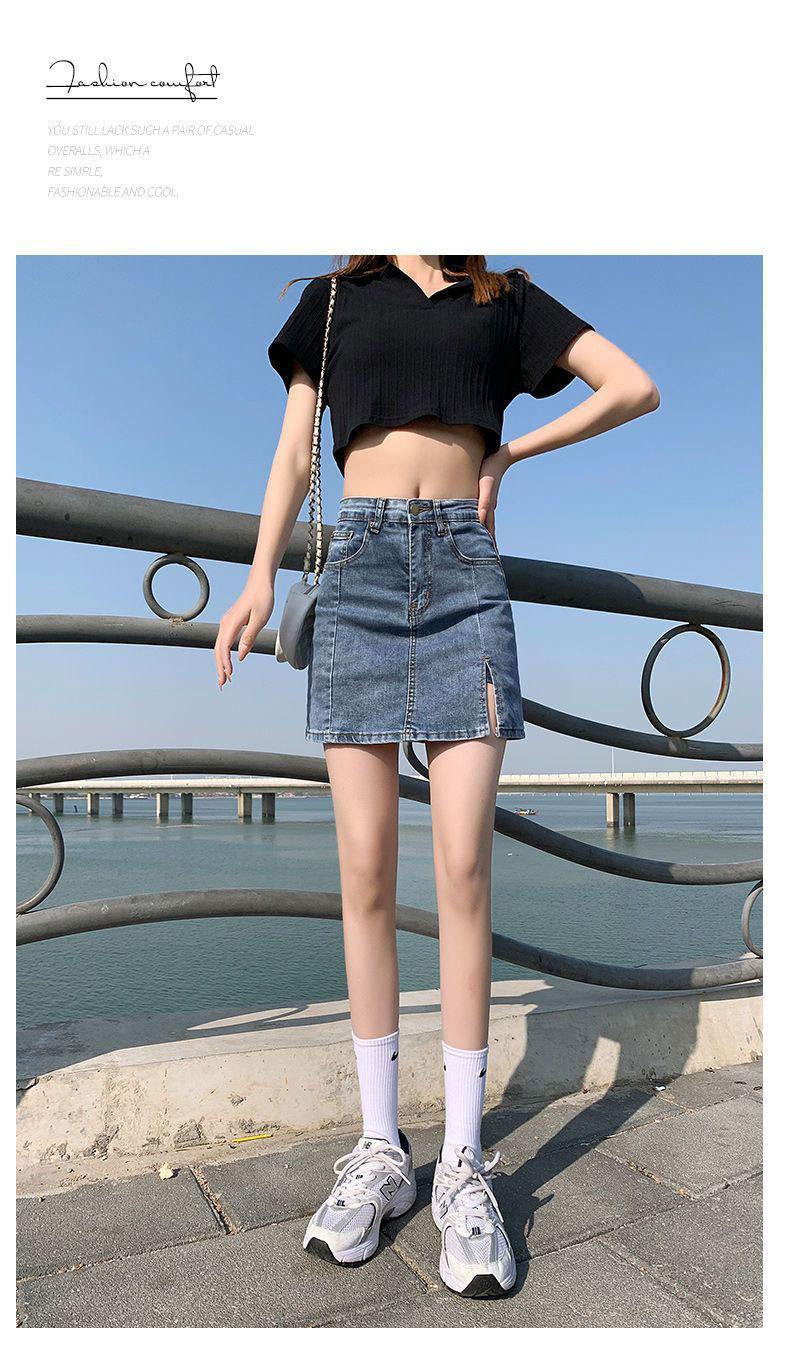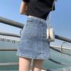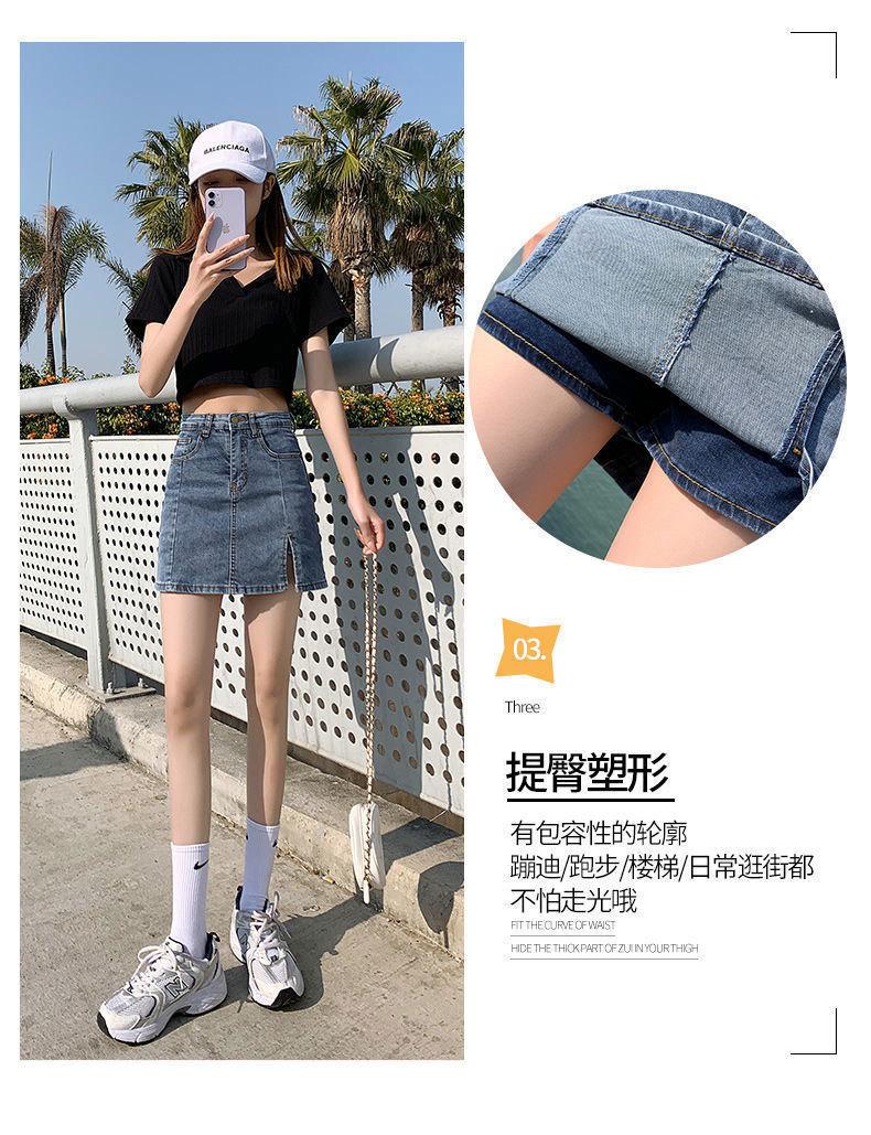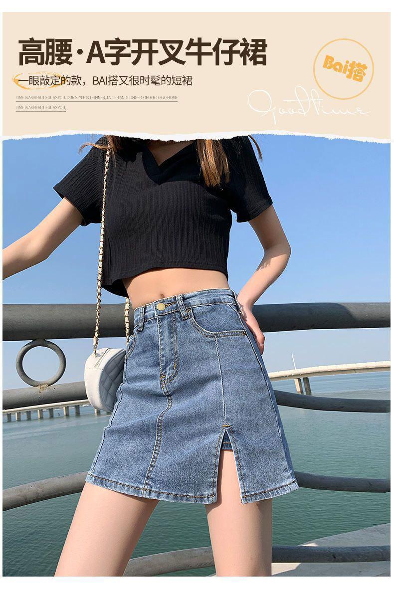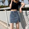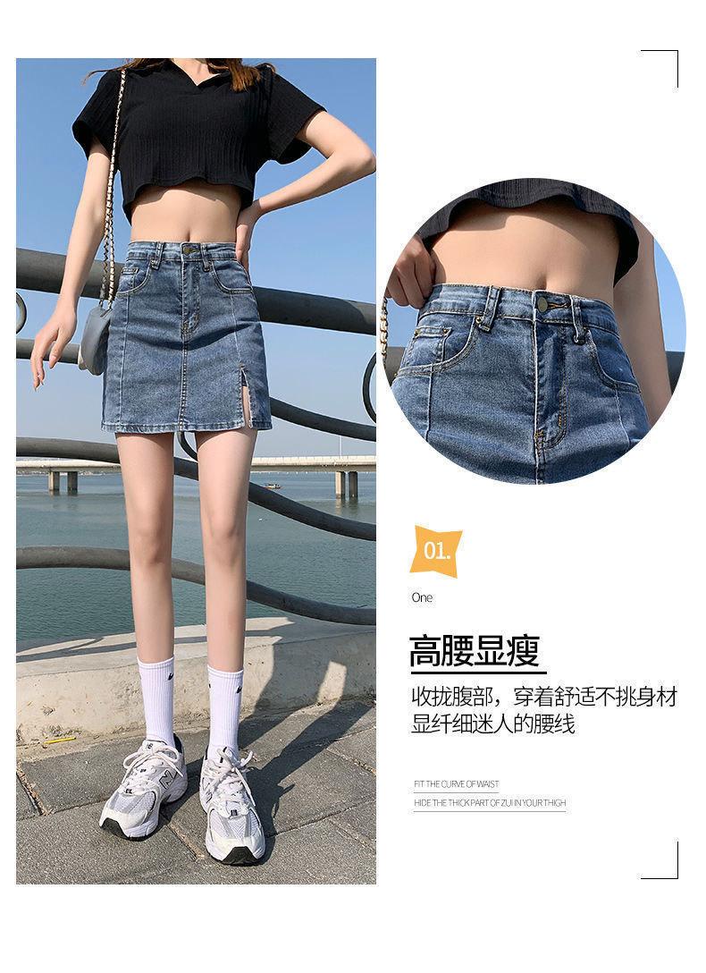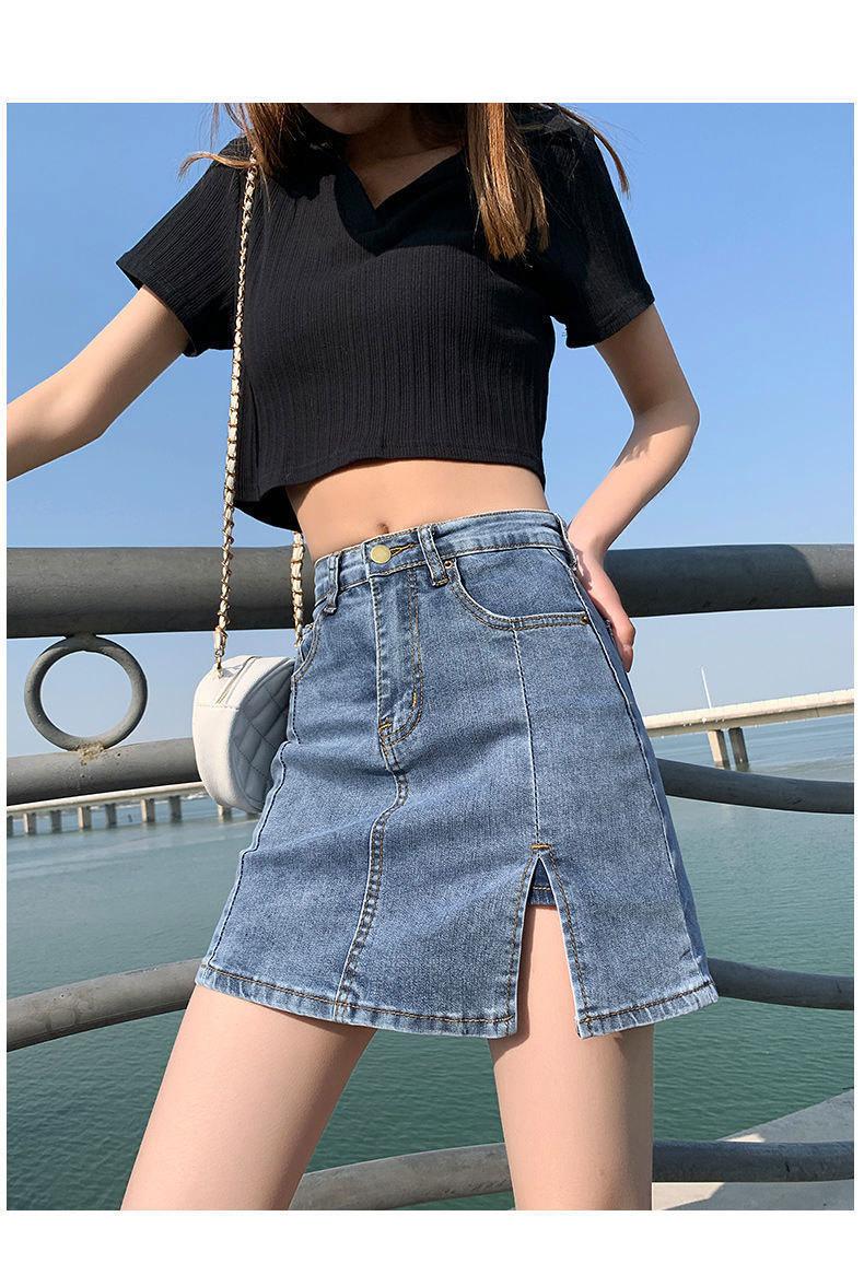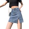 Falda vaquera elástica para mujer, estilo Ins, sexy, de cintura alta, antideslumbrante, línea A, falda con abertura, estilo retro