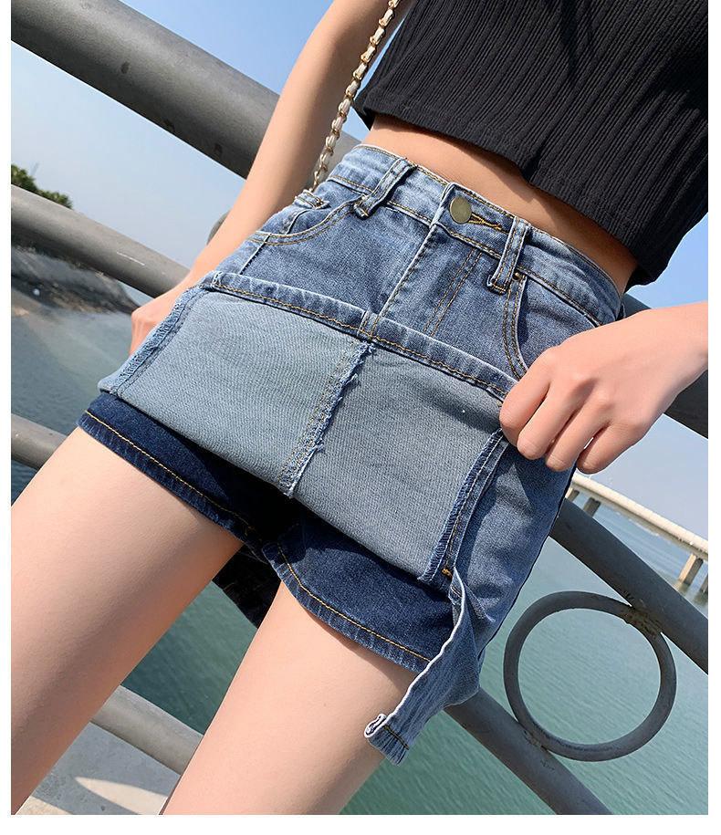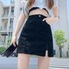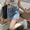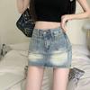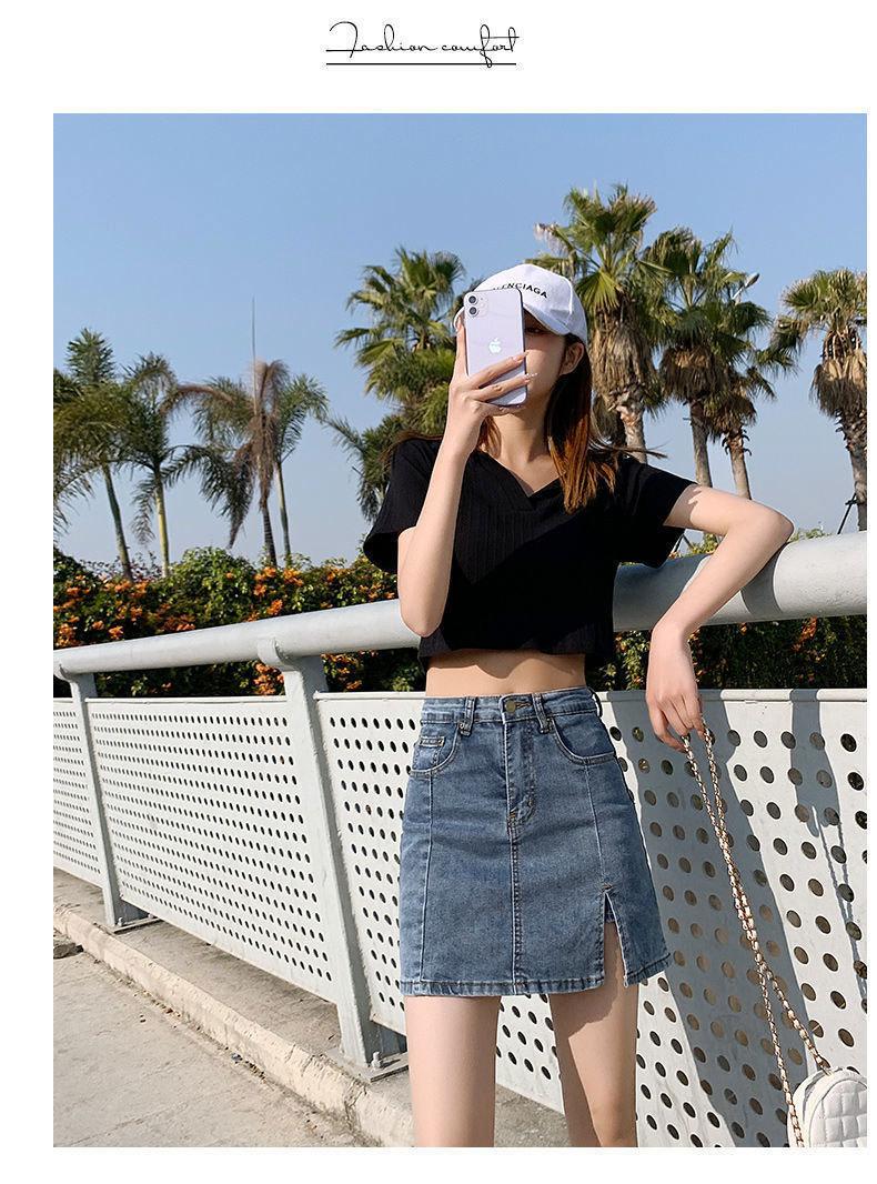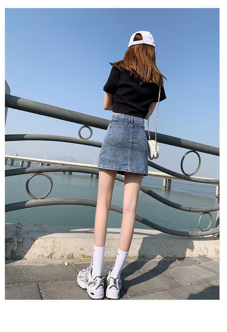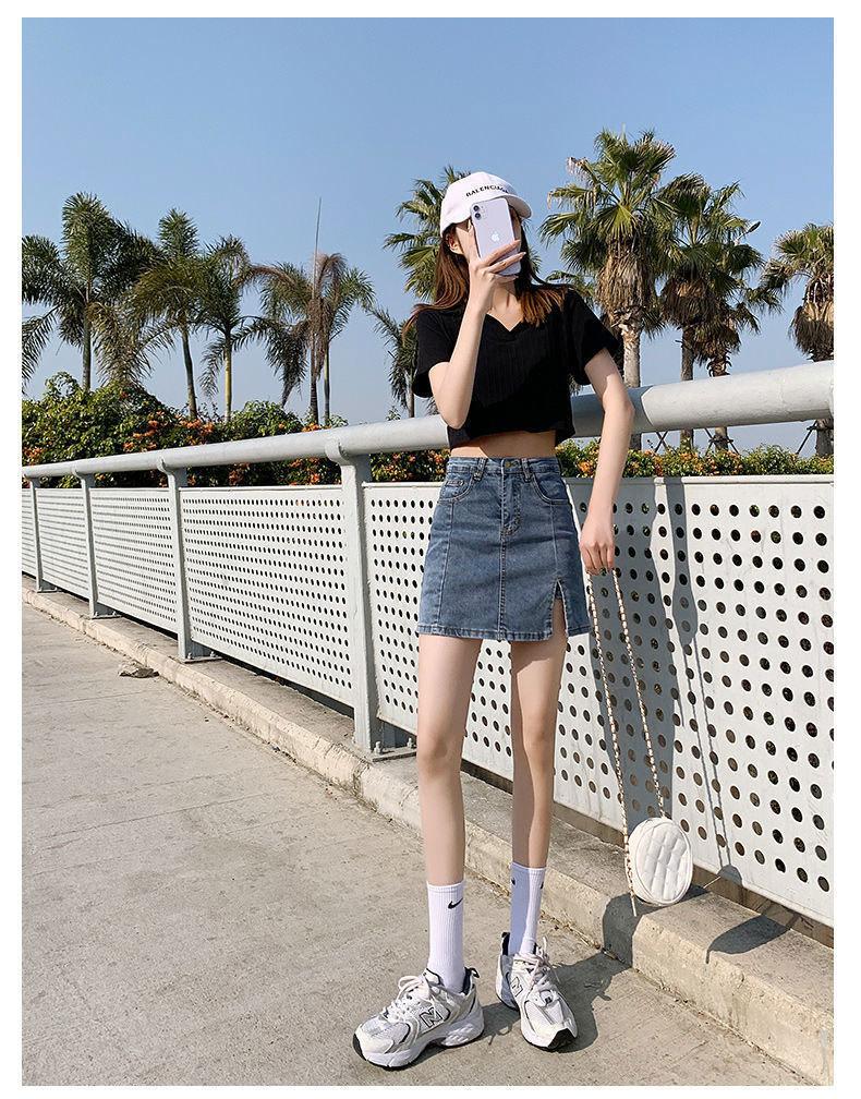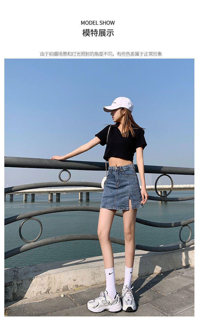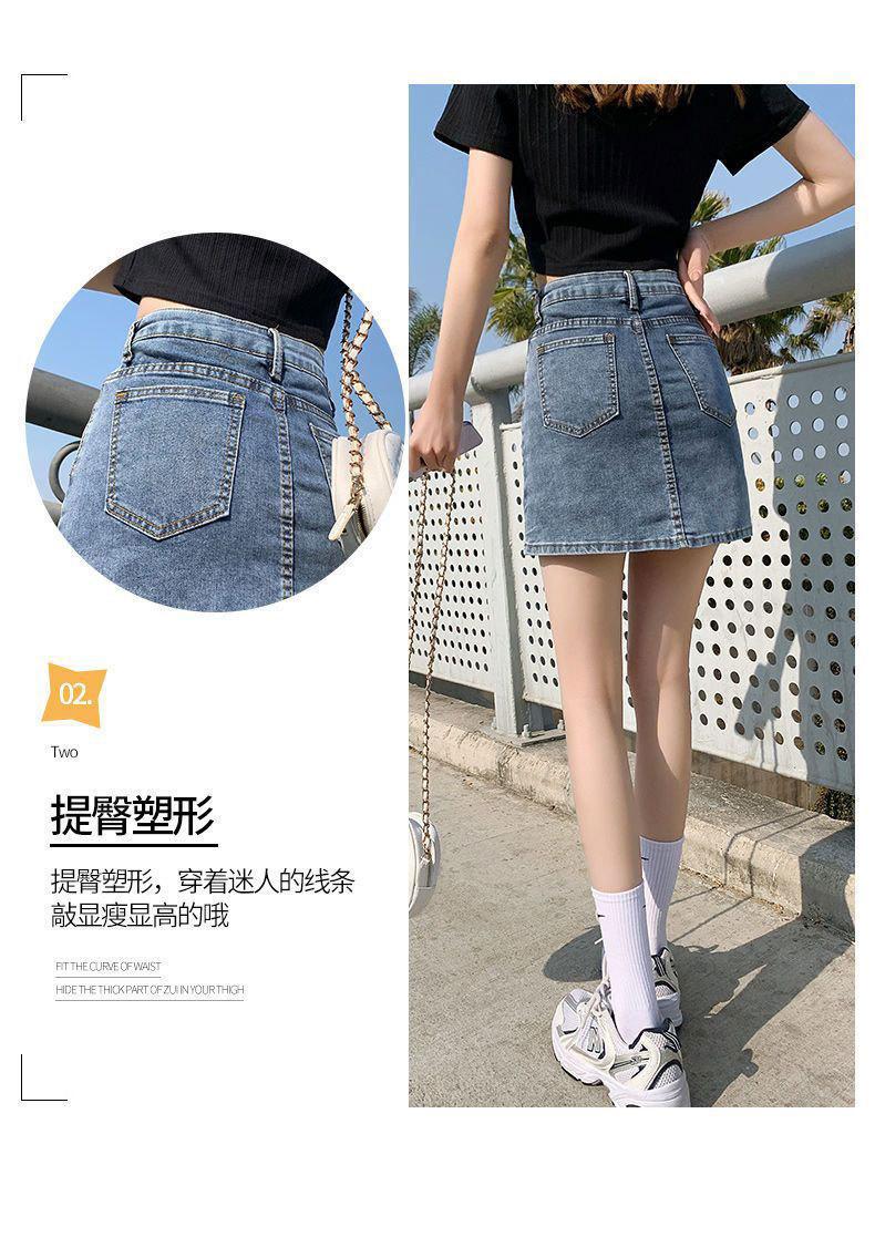 Falda vaquera elástica para mujer, estilo Ins, sexy, de cintura alta, antideslumbrante, línea A, falda con abertura, estilo retro