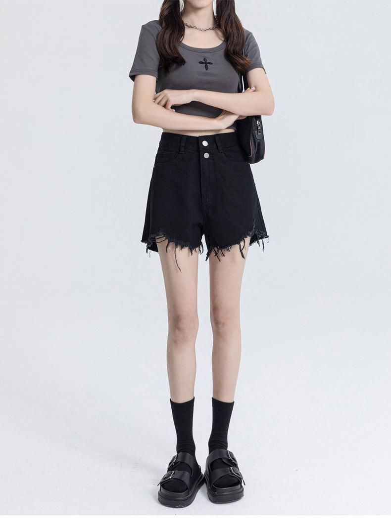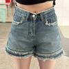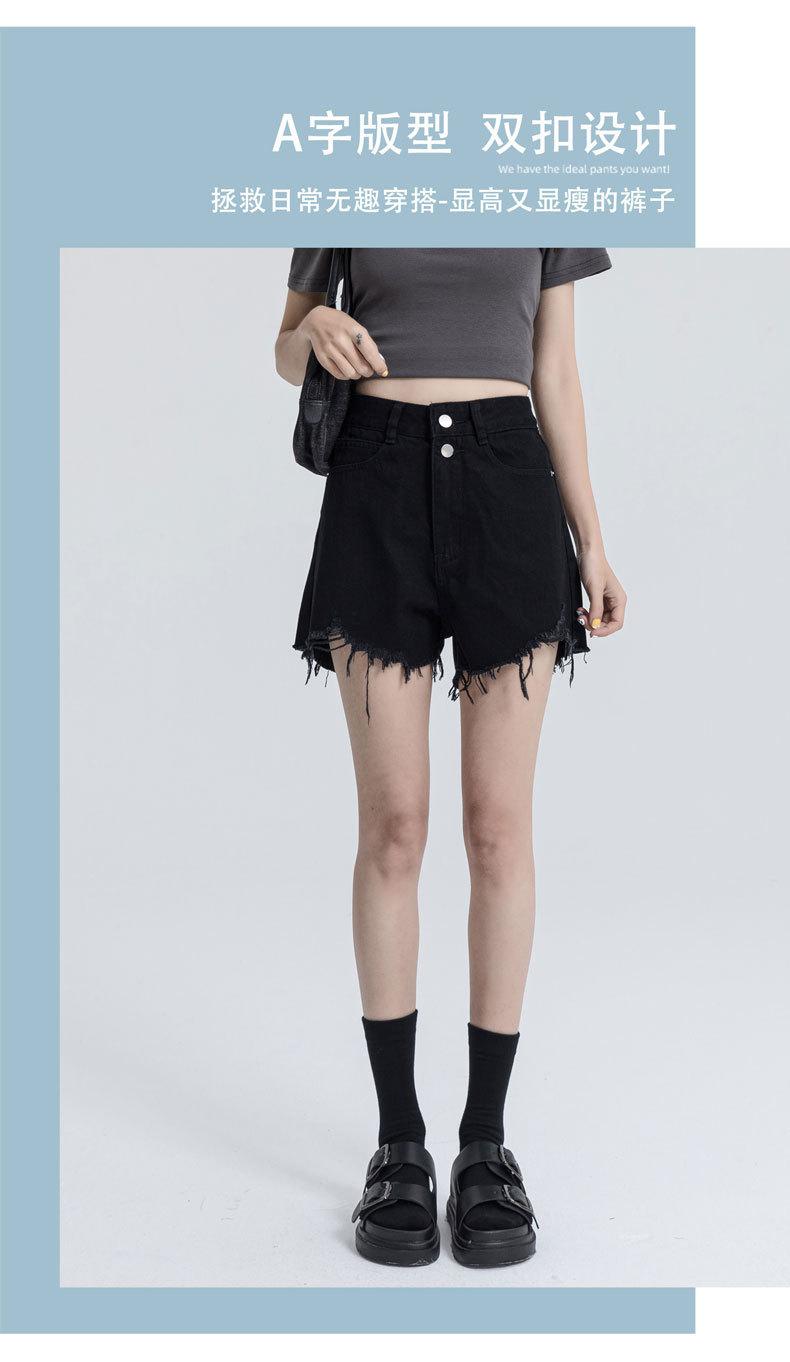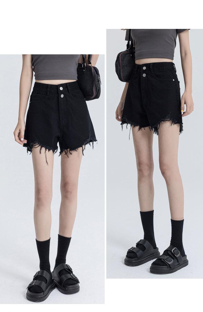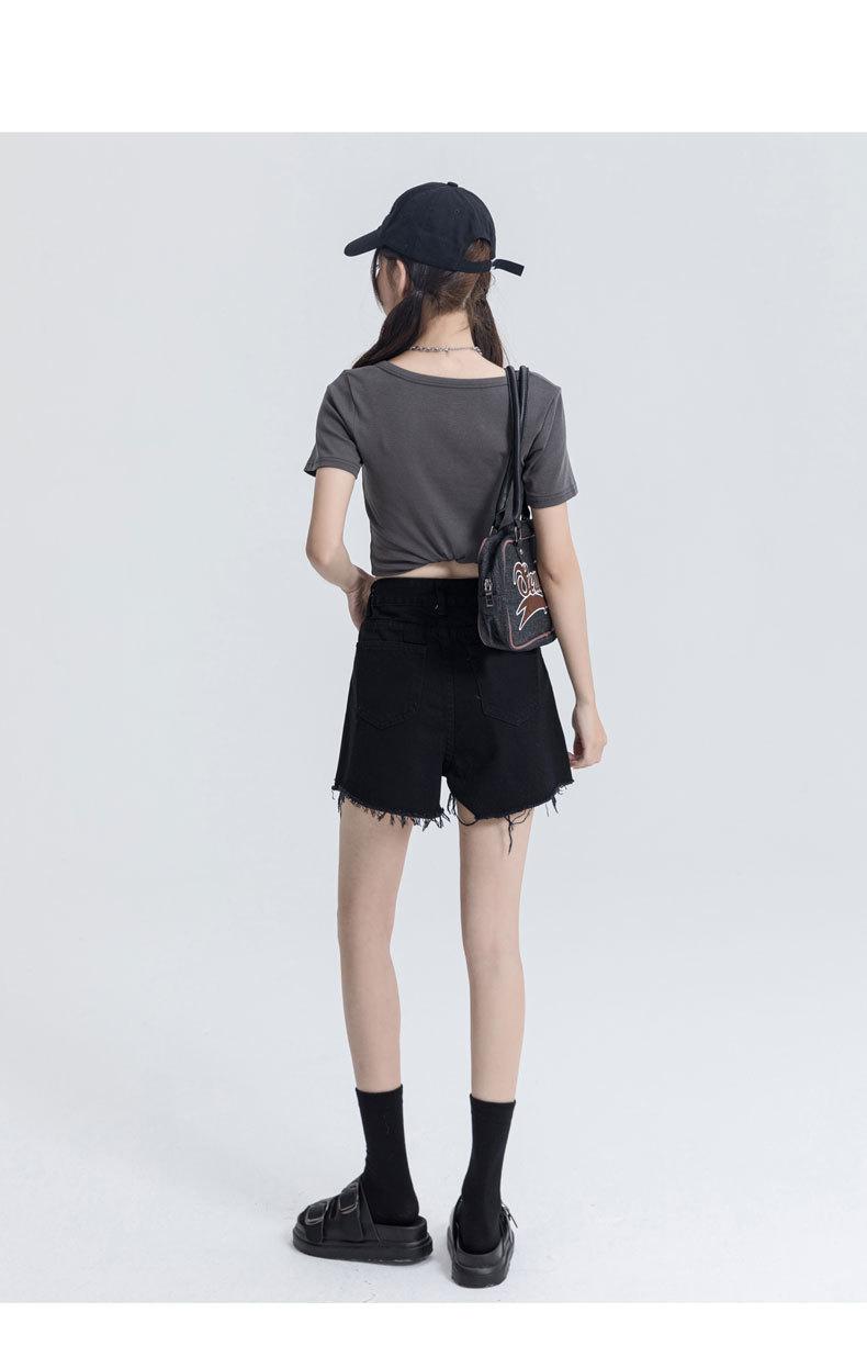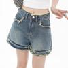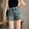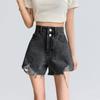 Shorts de mezclilla raídos para mujer, nicho, doble hebilla, cintura alta, holgados, pierna ancha en forma de A, estilo para chicas hot, pantalones cortos hot de agujero negro