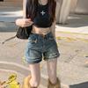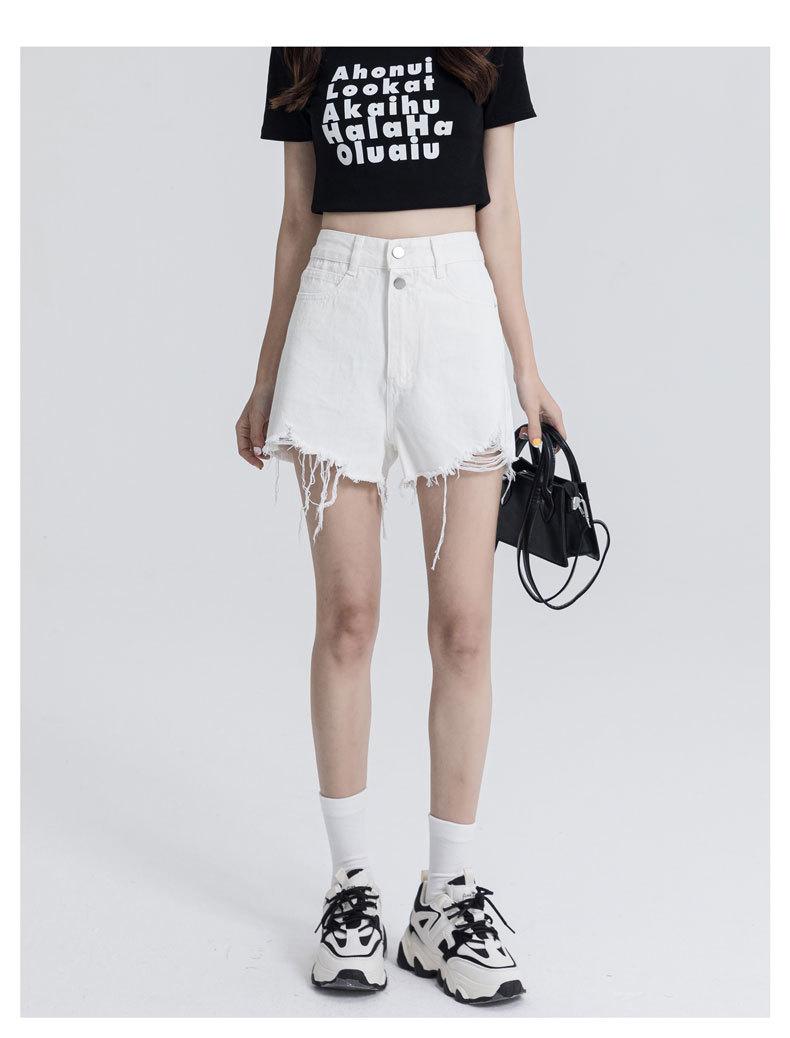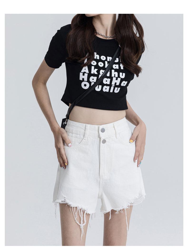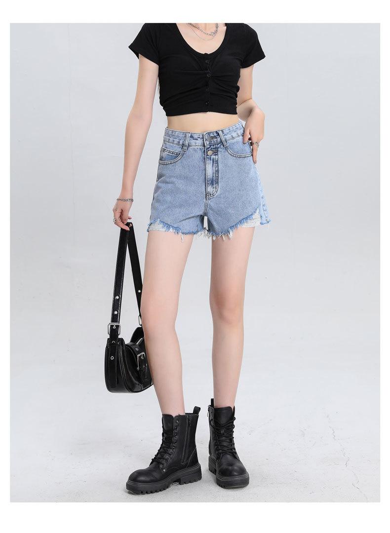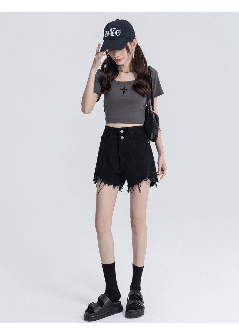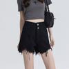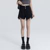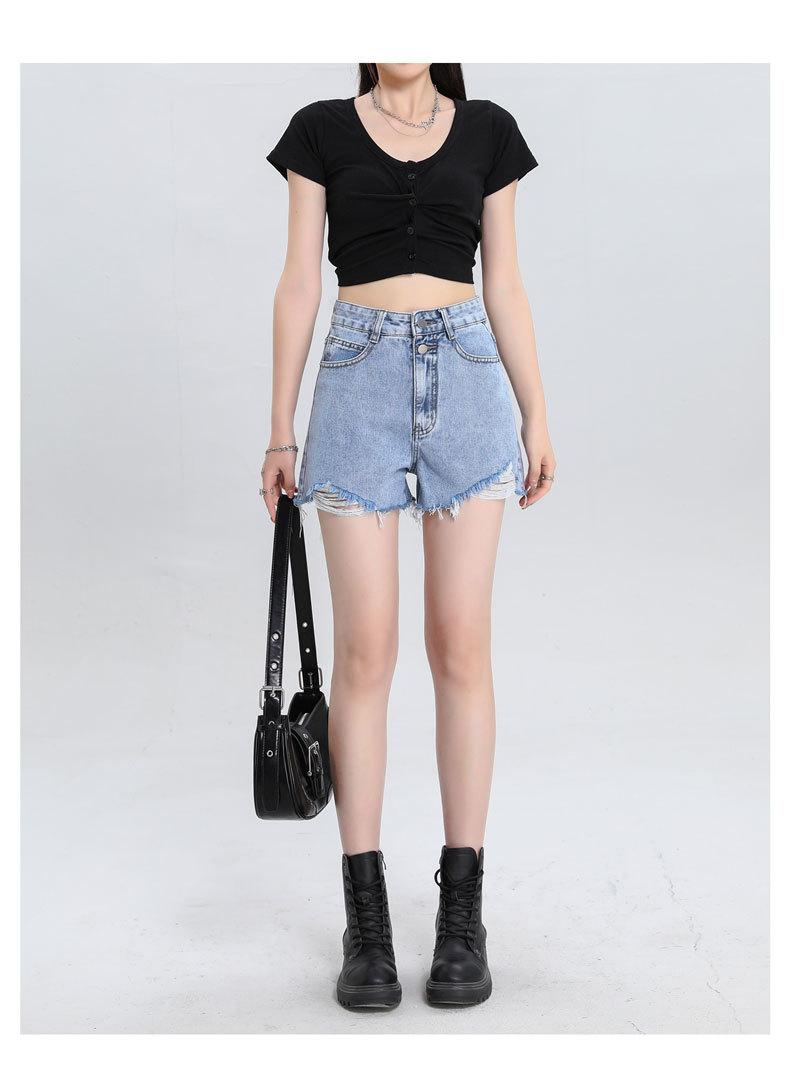 Shorts de mezclilla raídos para mujer, nicho, doble hebilla, cintura alta, holgados, pierna ancha en forma de A, estilo para chicas hot, pantalones cortos hot de agujero negro