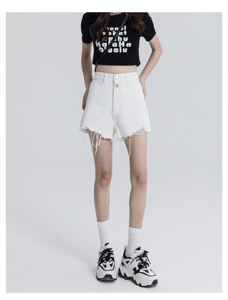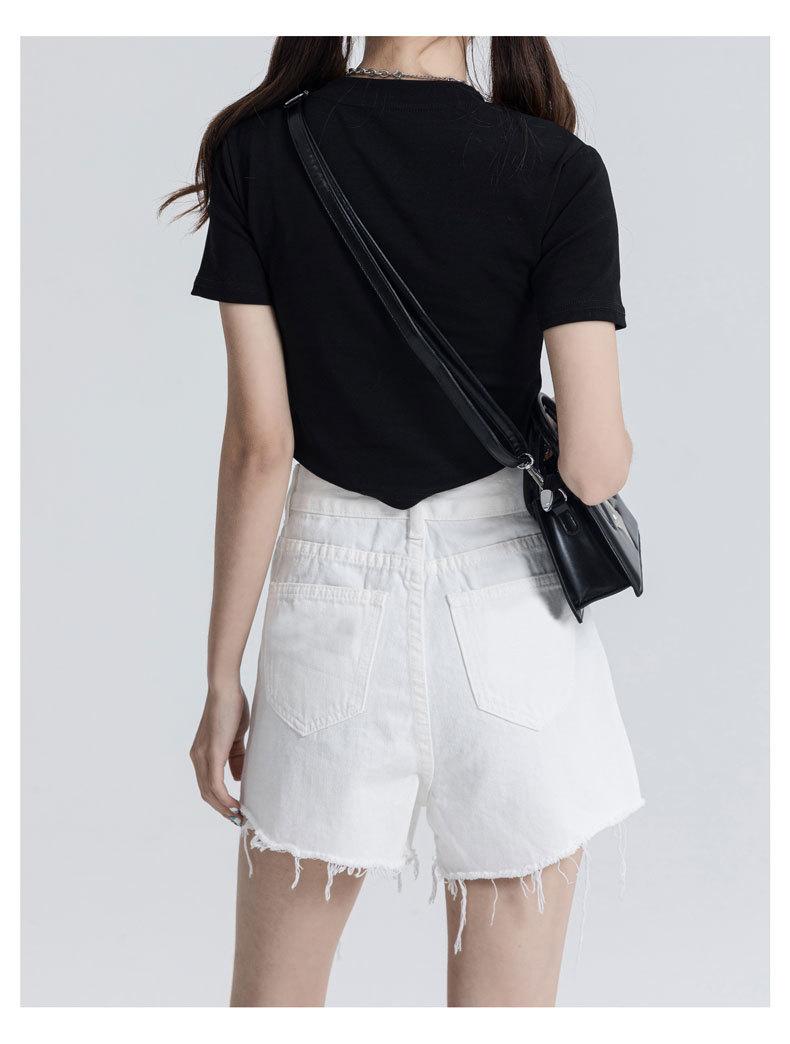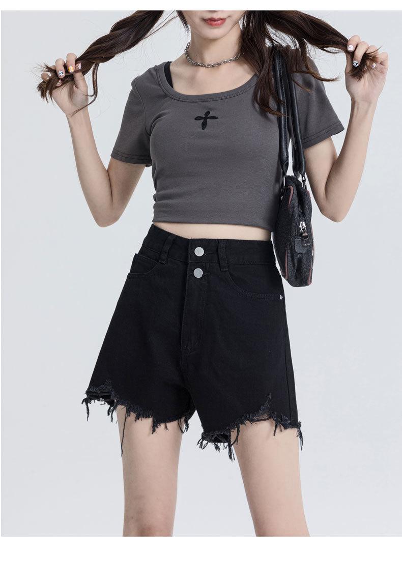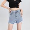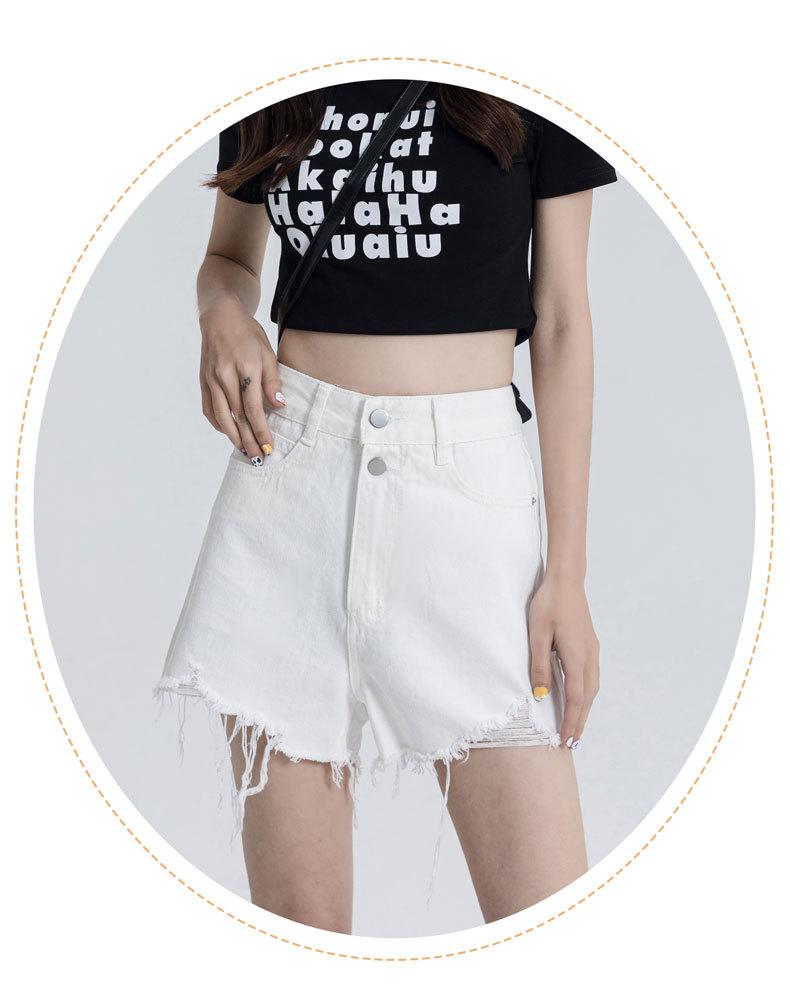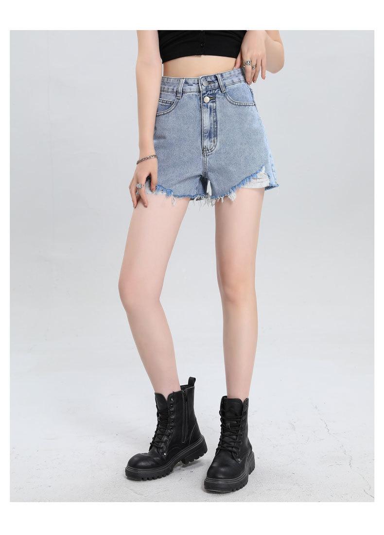 Shorts de mezclilla raídos para mujer, nicho, doble hebilla, cintura alta, holgados, pierna ancha en forma de A, estilo para chicas hot, pantalones cortos hot de agujero negro
