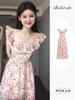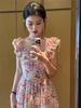 Vestido Floral Super Hada Francés Diseño Nicho Vacaciones Junto al Mar Cintura Falda para Mujeres