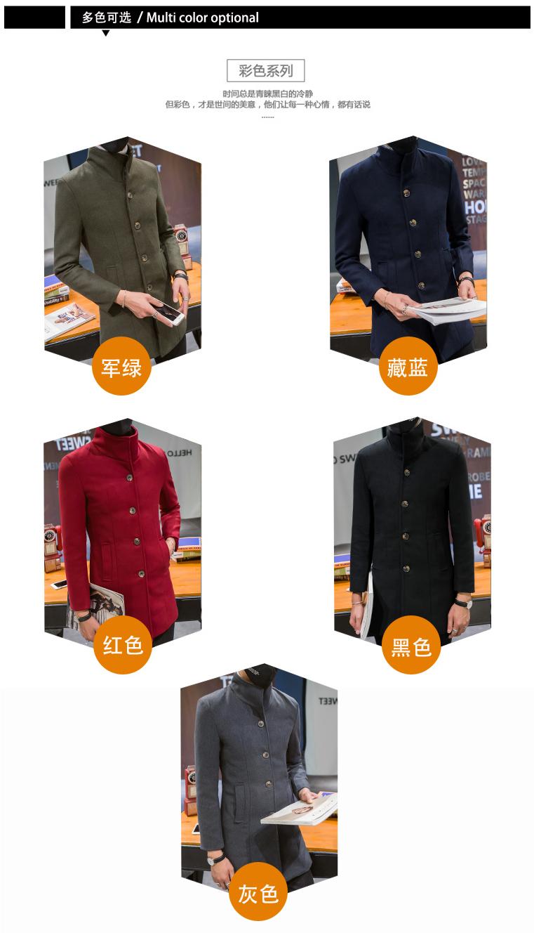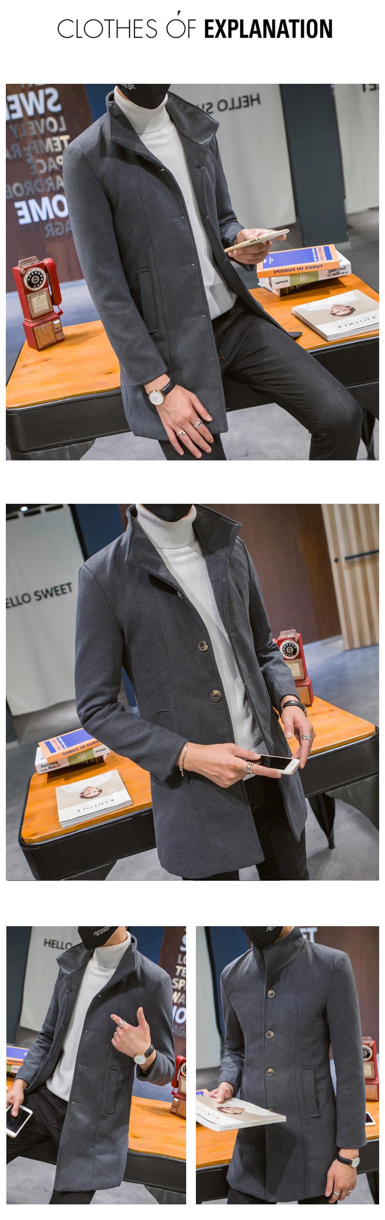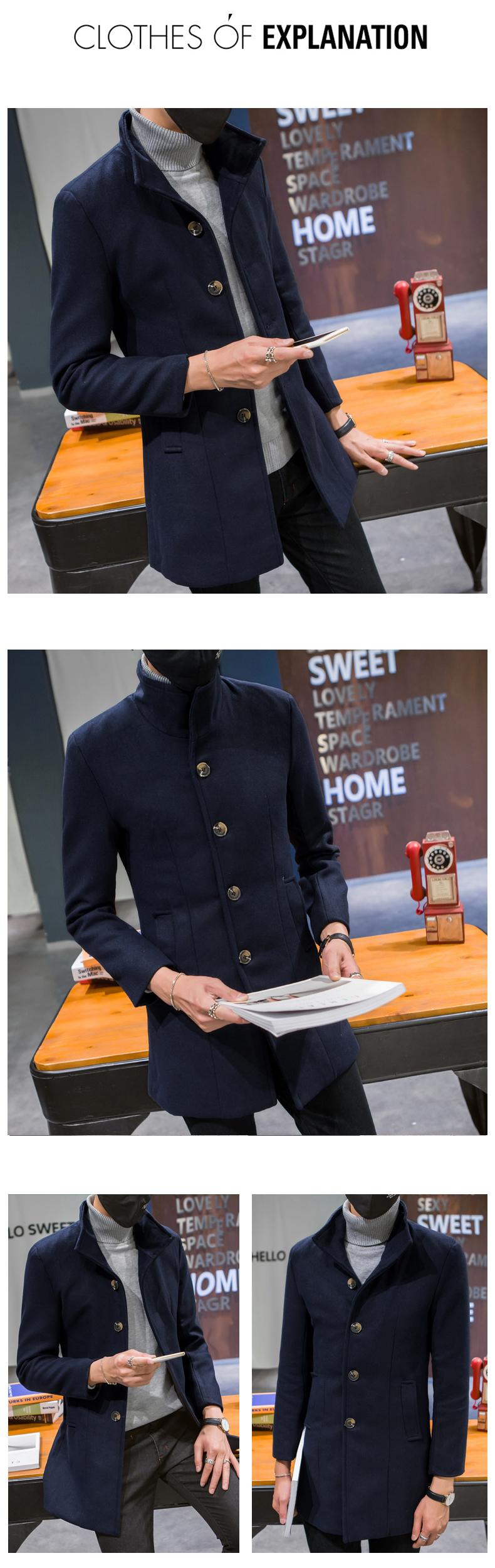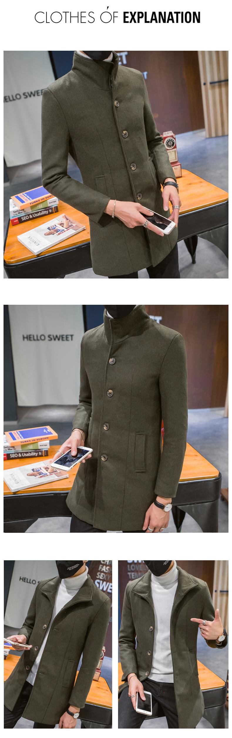 Compra Abrigo informal cortavientos de cuello alto de longitud media para hombre, abrigo neón, versión coreana juvenil, cortavientos de lana entallado de color sólido, venta al por mayor al por mayor en Joom.pro