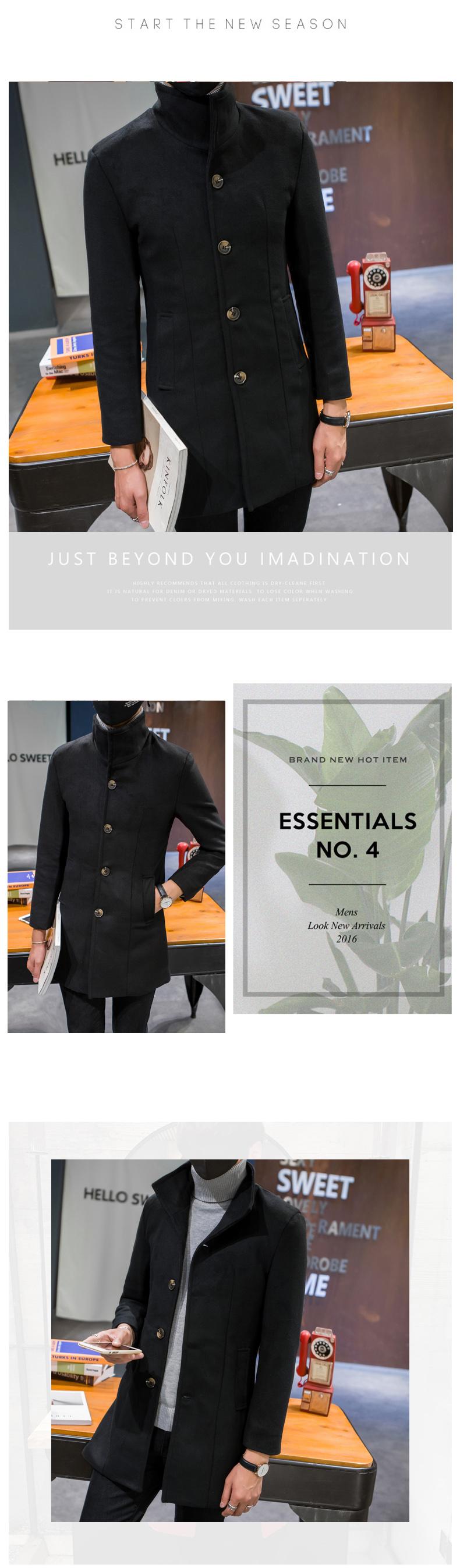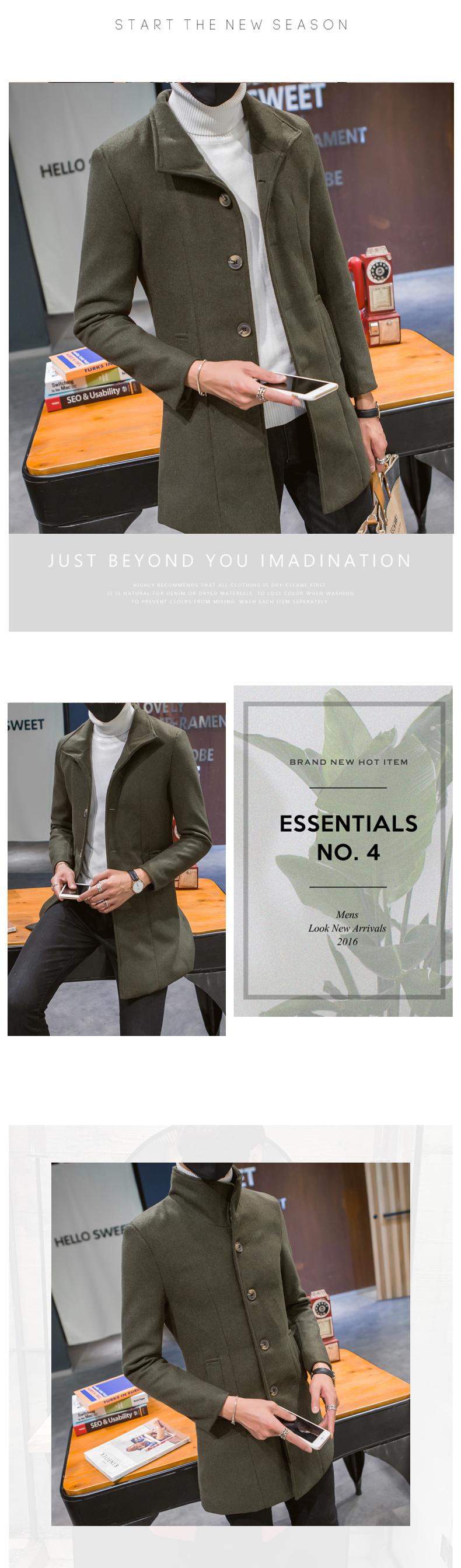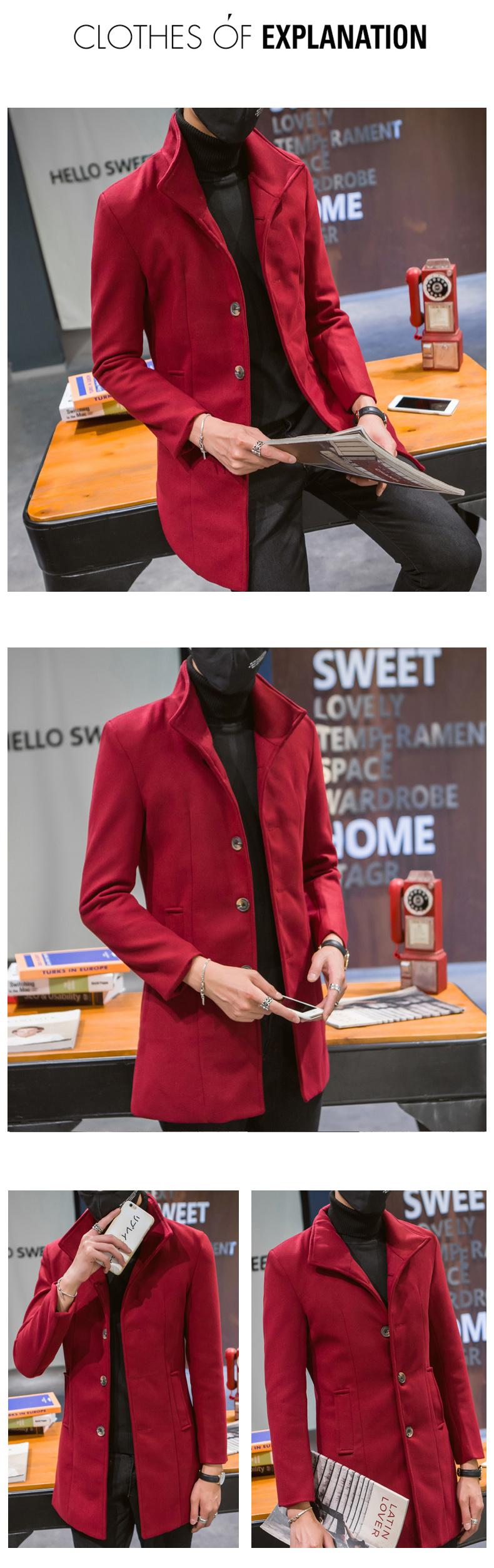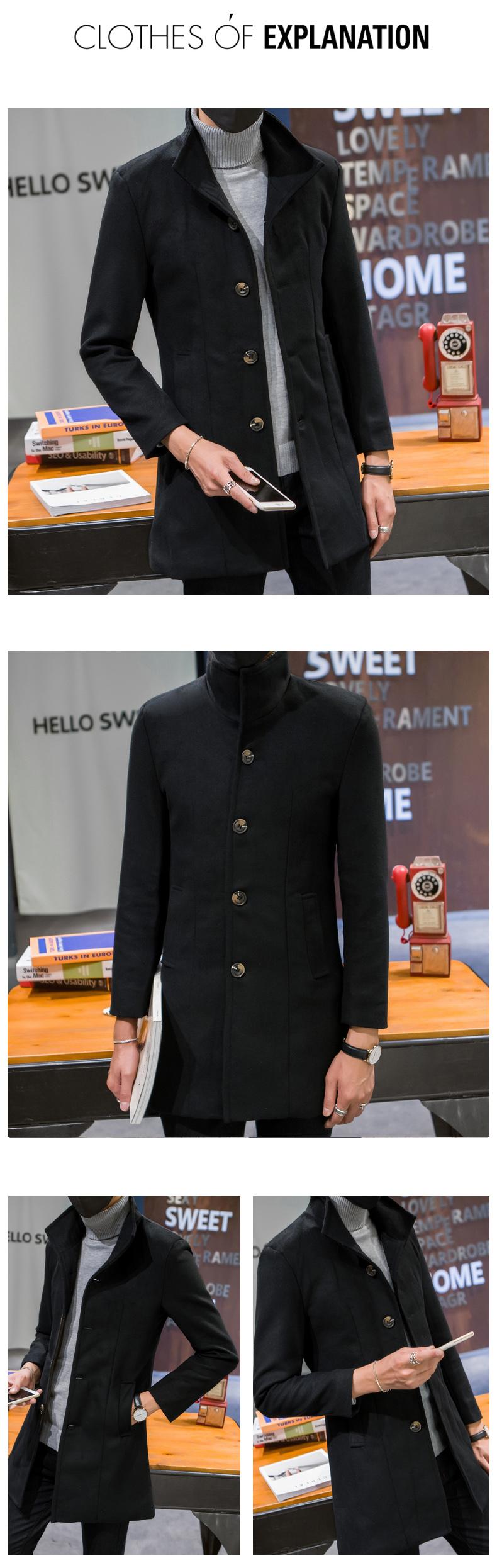 Compra Abrigo informal cortavientos de cuello alto de longitud media para hombre, abrigo neón, versión coreana juvenil, cortavientos de lana entallado de color sólido, venta al por mayor al por mayor en Joom.pro
