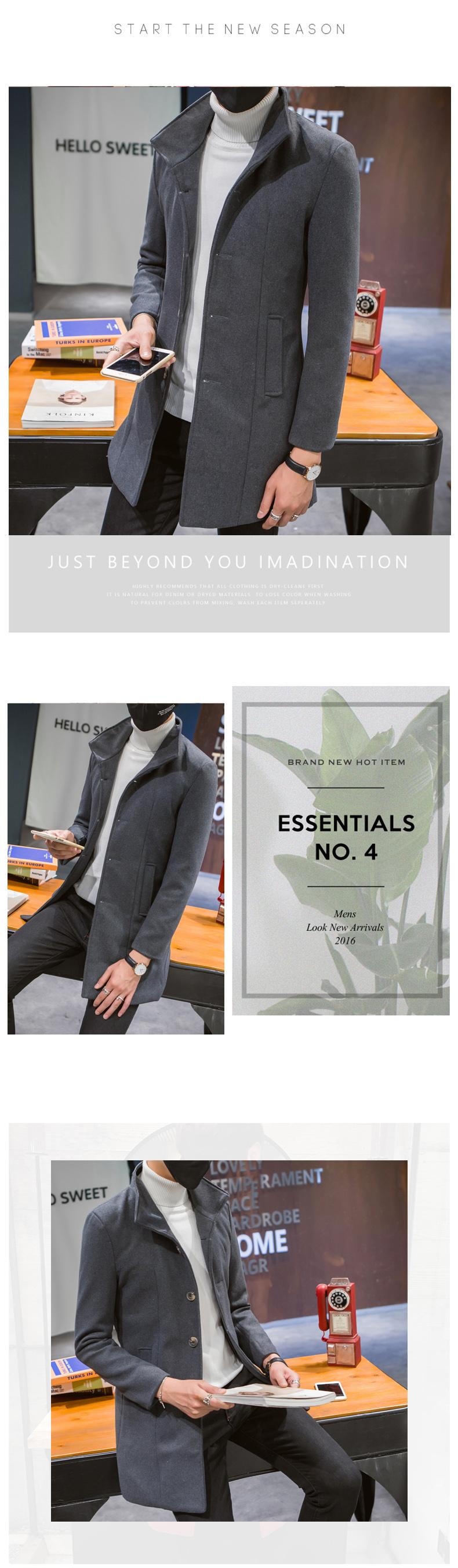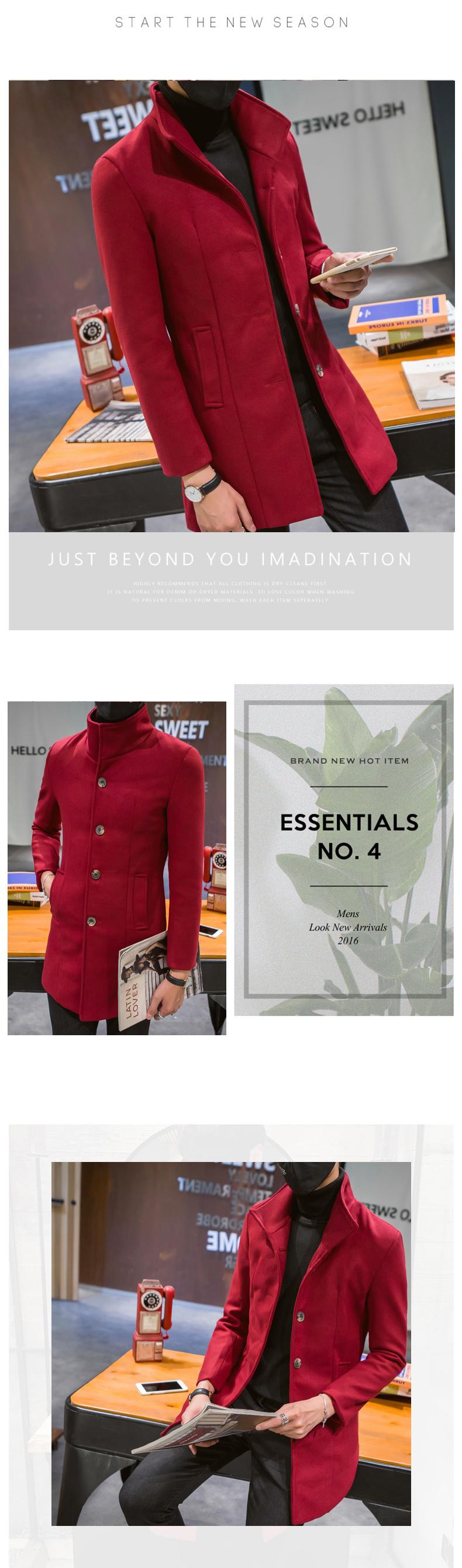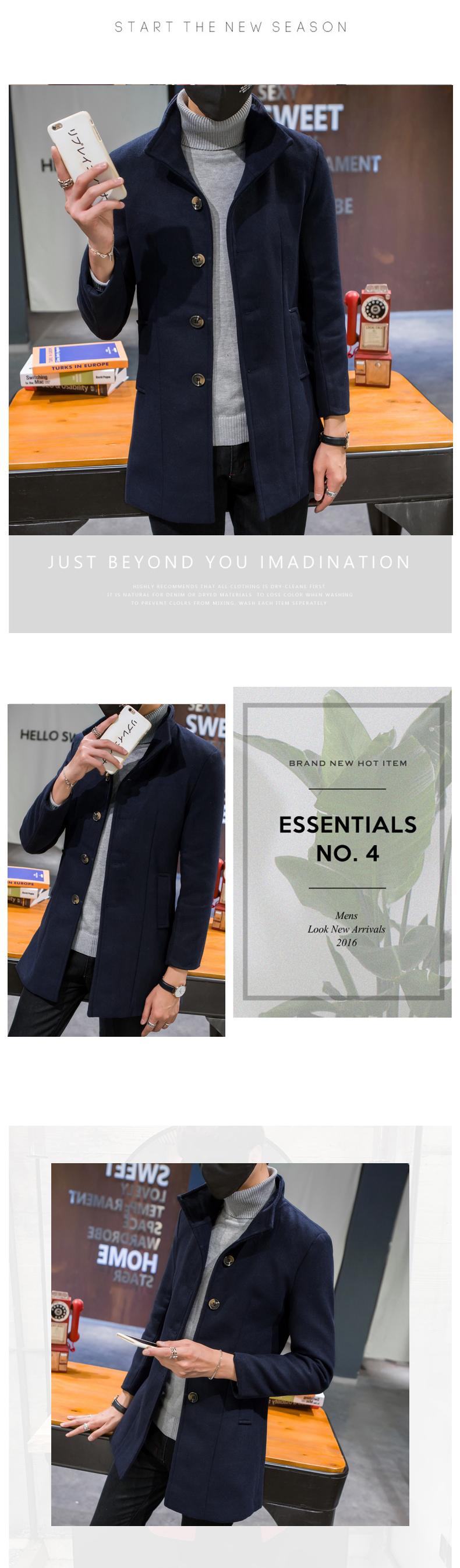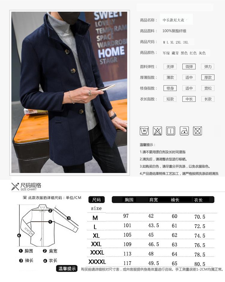 Compra Abrigo informal cortavientos de cuello alto de longitud media para hombre, abrigo neón, versión coreana juvenil, cortavientos de lana entallado de color sólido, venta al por mayor al por mayor en Joom.pro