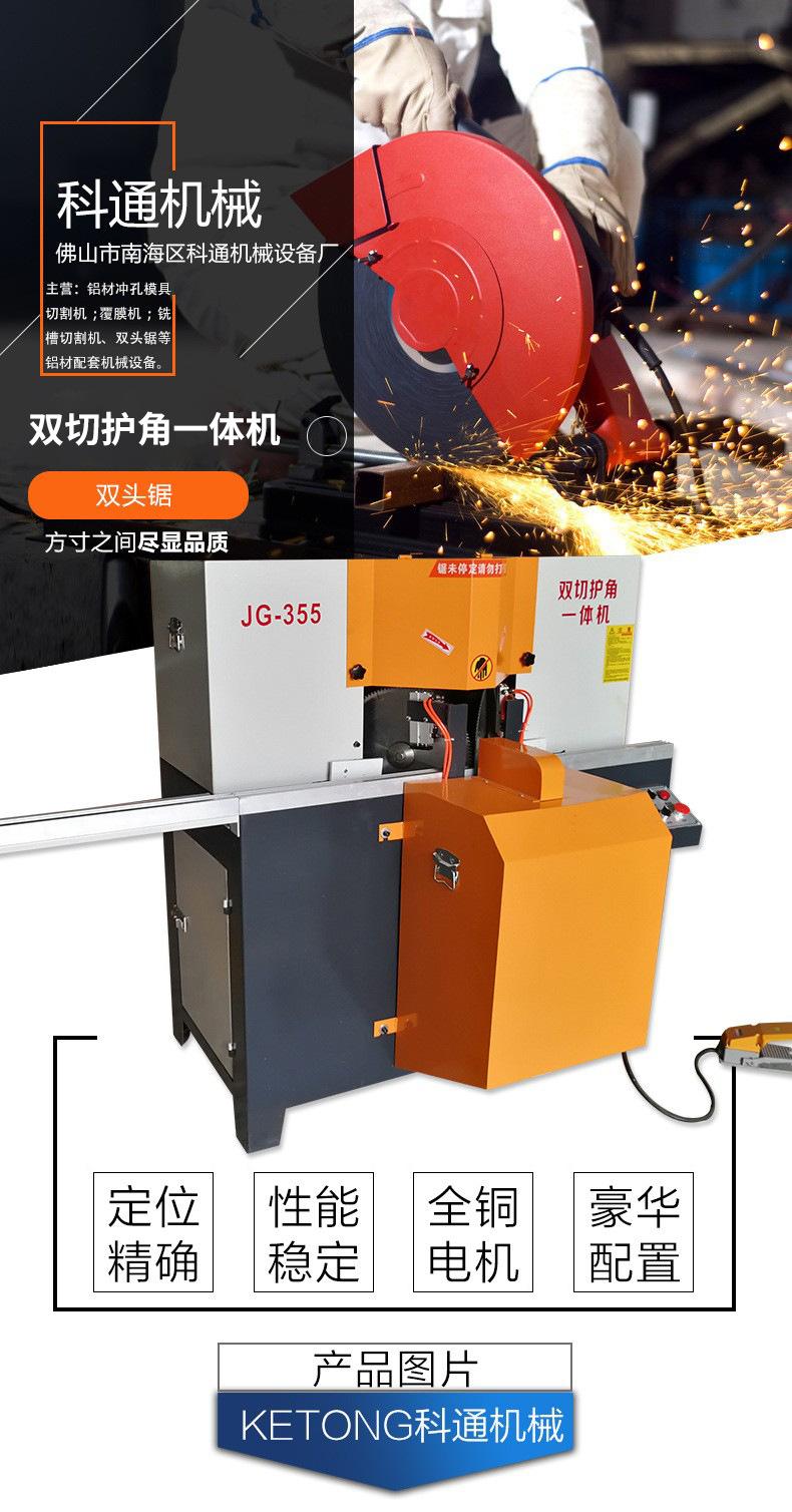 Rendimiento: La cortadora angular de aluminio de doble hoja puede cortar dos ángulos de 45 grados a la vez, de forma rápida y precisa. Prensado y corte automáticos, alta velocidad; con solo presionar el interruptor, prensa el material automáticamente y corta automáticamente, de forma segura y sencilla. Alimentación de aceite neumática, velocidad de corte estable. Atomización y pulverización automática de aceite durante el aserrado para refrigerar y lubricar la hoja de sierra, evitando que se adhiera a las virutas de aluminio y manteniendo el filo. Las dos hojas de sierra son accionadas por motores independientes, con alta velocidad y gran fuerza de corte. Dos conjuntos de dispositivos de prensado, uno superior y otro lateral, prensan y fijan el material. La presión de prensado se puede ajustar para evitar que el material se presione y deforme. Las rejillas de alimentación y descarga especiales están ubicadas en los extremos izquierdo y derecho de la máquina. La rejilla de descarga está equipada con un deflector de posicionamiento para facilitar el aserrado de tamaño fijo (la mesa transportadora es una plataforma de placa de hierro). Las sierras dobles cortan simultáneamente y permiten cortar dos ángulos de 45 grados simultáneamente. El protector de ángulos permite cortar para completar la acción de una sola vez, con alta eficiencia, ángulos precisos y empalmes precisos sin espacios.