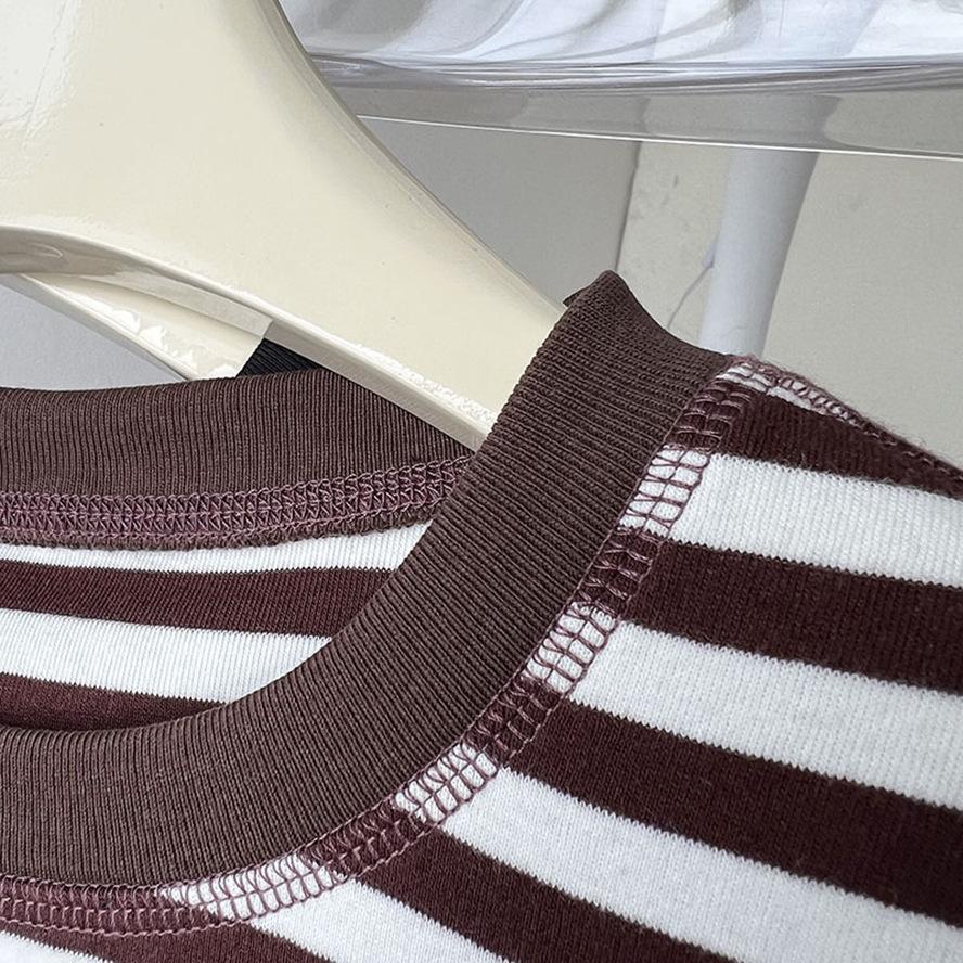 Camiseta de manga larga a rayas para mujer Primavera y Otoño 2024 Nuevo diseño de línea brillante Suelta casual Todo fósforo Parte inferior Top Primavera