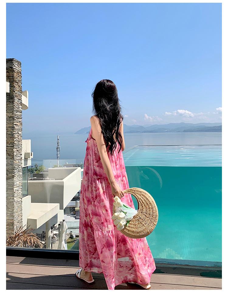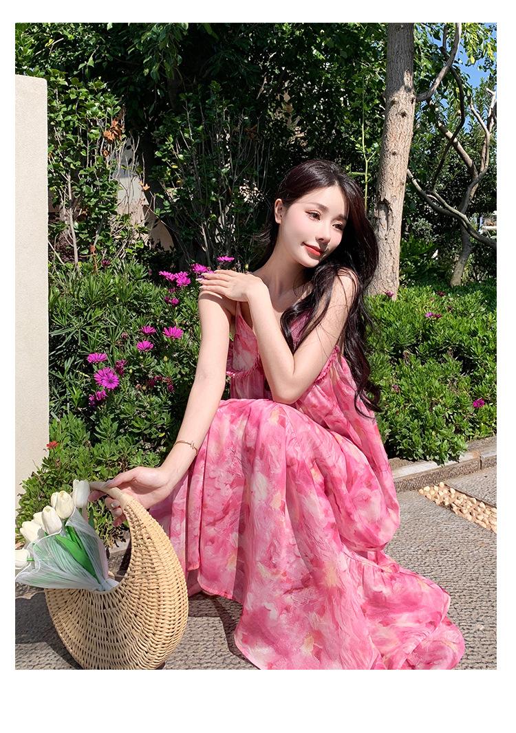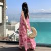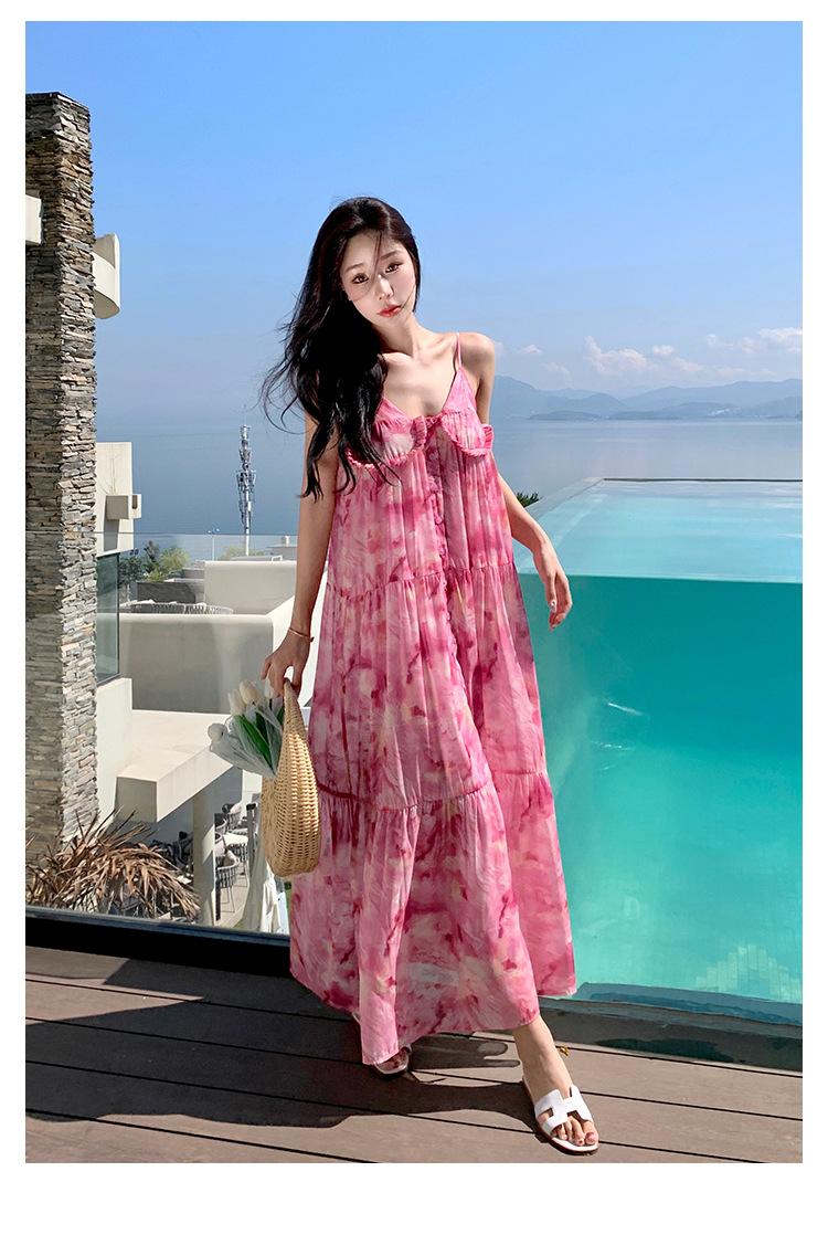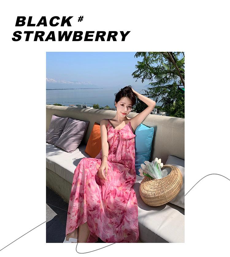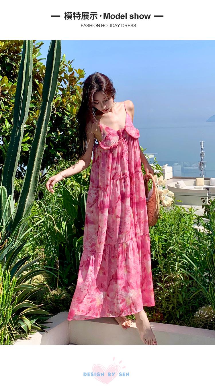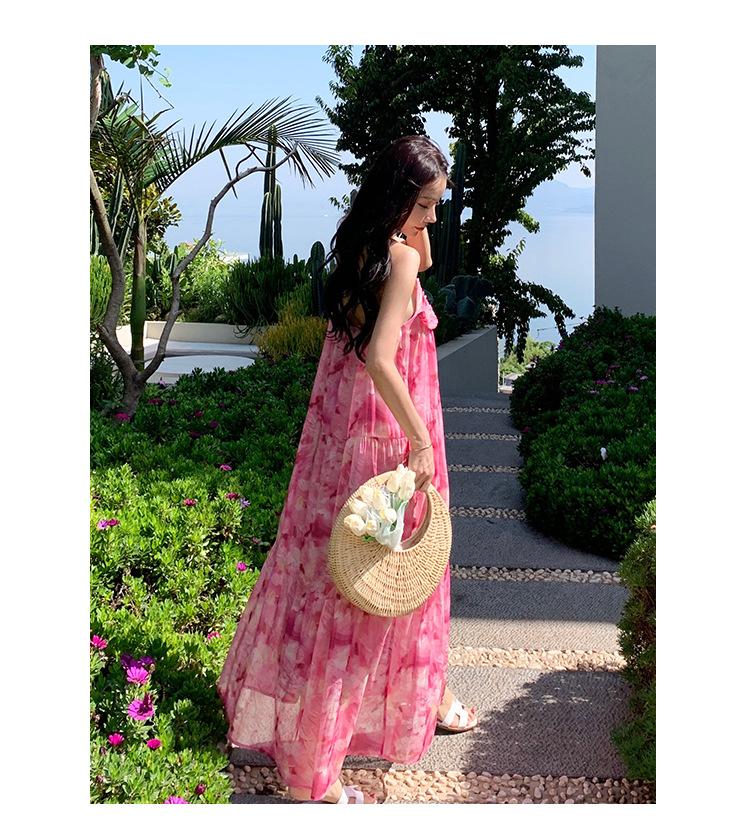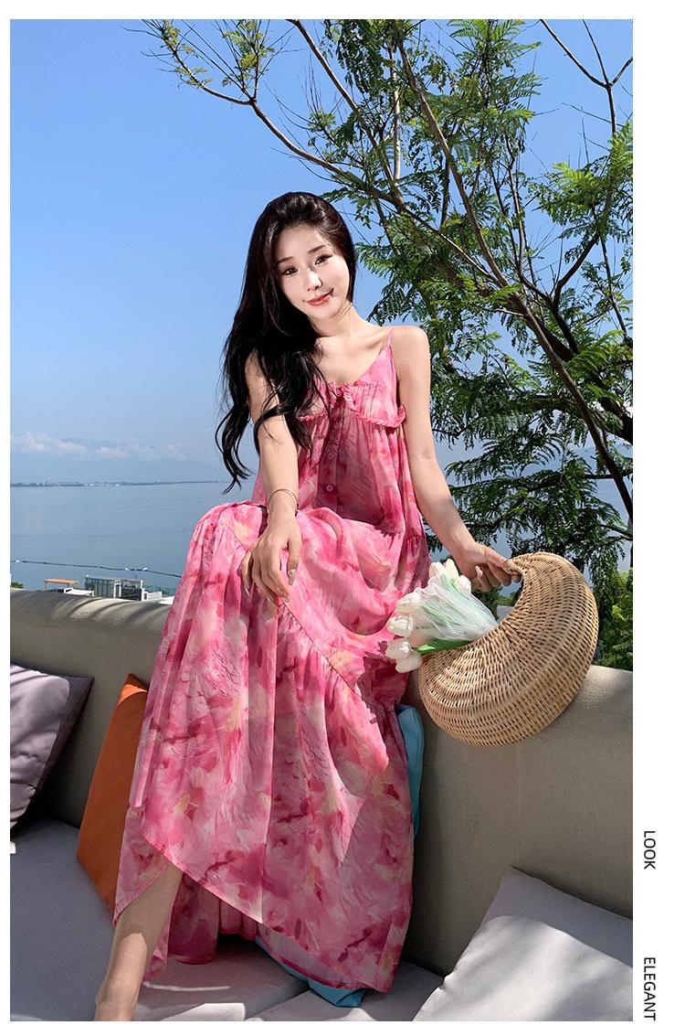 Vacaciones de Verano Sanya Vestido Largo Suelto Bohemio con Estampado Floral, Tirantes Espagueti, Hada Princesa, con un Ambiente Moderno y Elegante