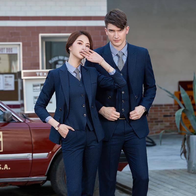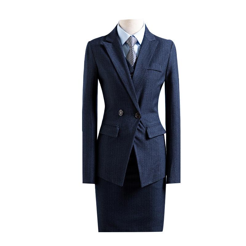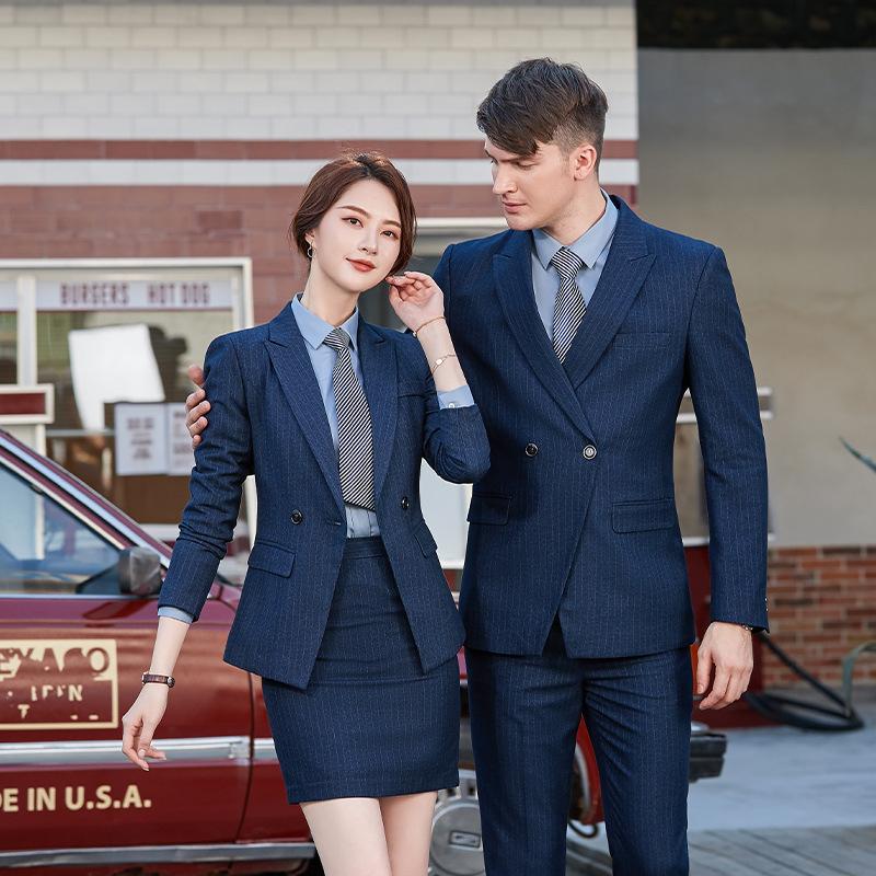 Traje de negocios para mujer, traje de otoño e invierno a rayas, uniforme de estilo británico, vestido de oficina, pantalones para hombre y mujer, ropa de trabajo