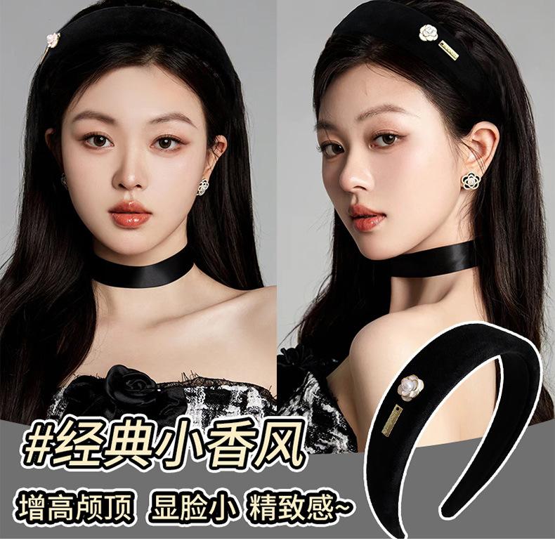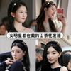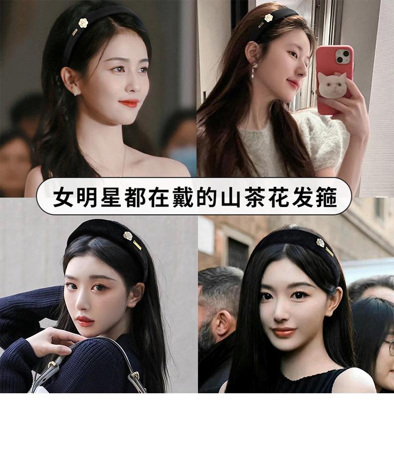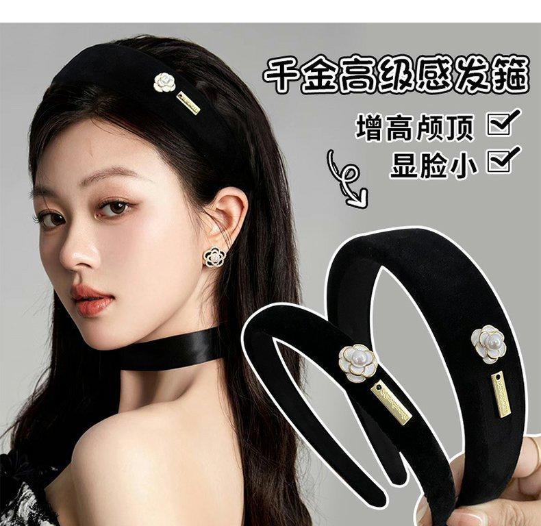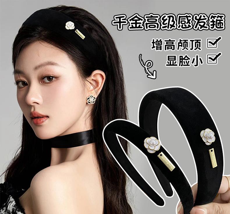 Aro para el cabello de camelia de terciopelo para mujer, otoño e invierno, de alta calidad, combina con todo, para salir, accesorios para el cabello, estilo coreano, aro para el cabello que presiona la parte superior craneal alta