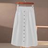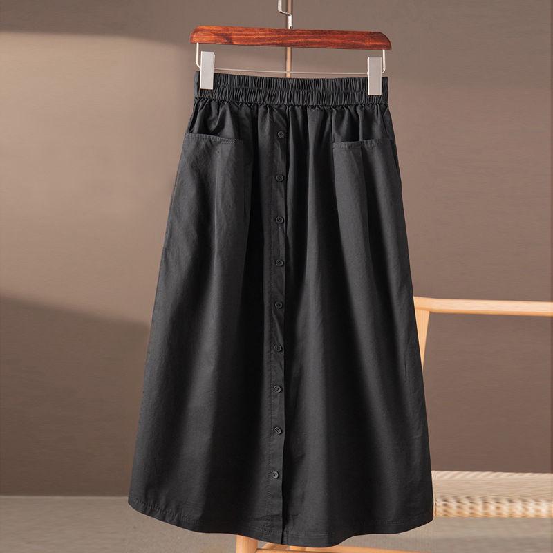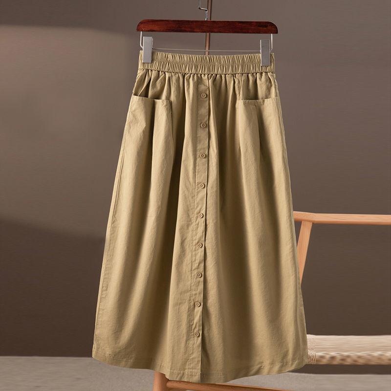 Algodón Puro Color Sólido Artístico Casual Falda de Cintura Suelta 2023 Nuevo Adelgazante Estilo Coreano Combinable Un Solo Botón Falda Línea A