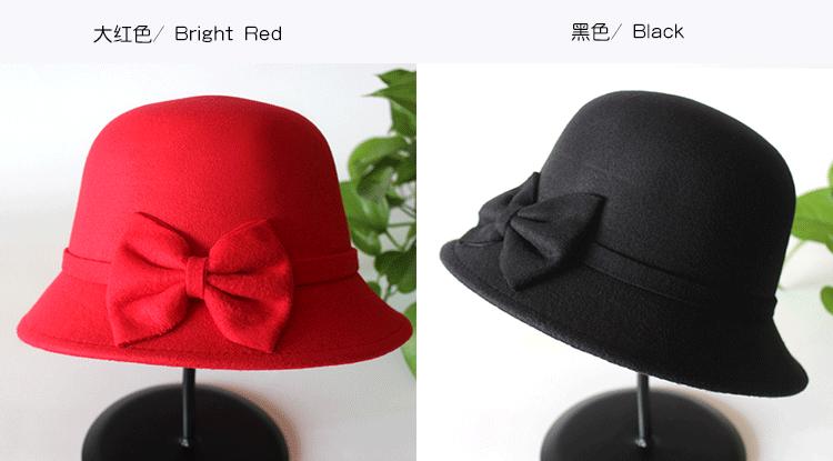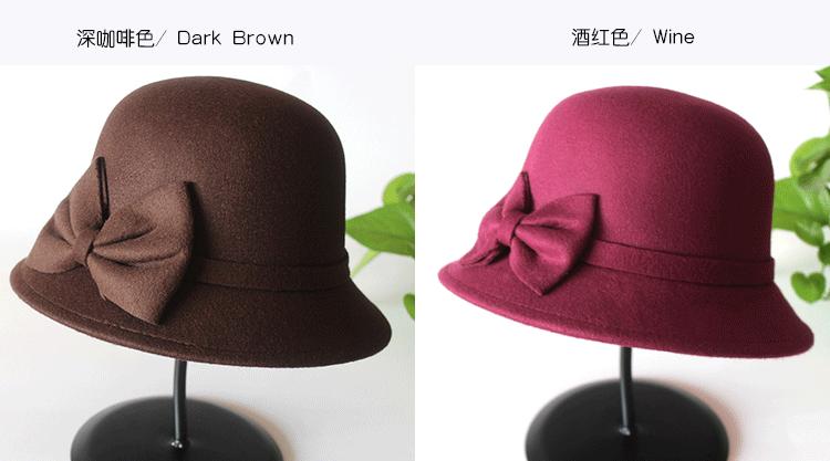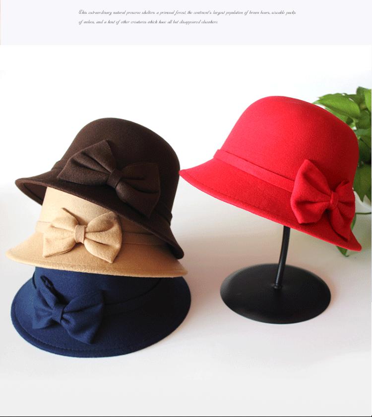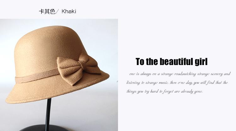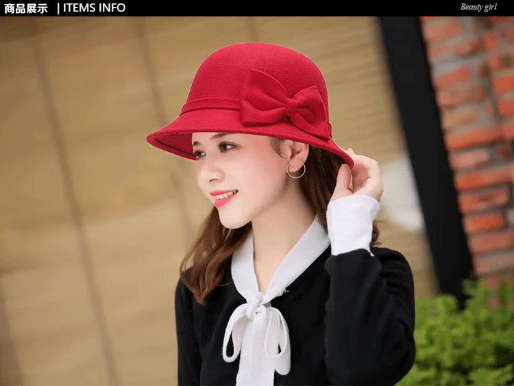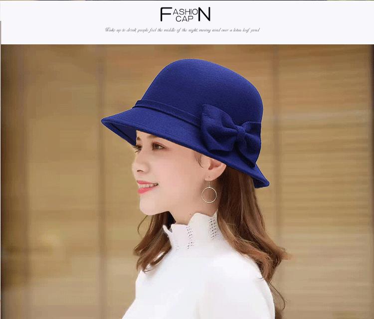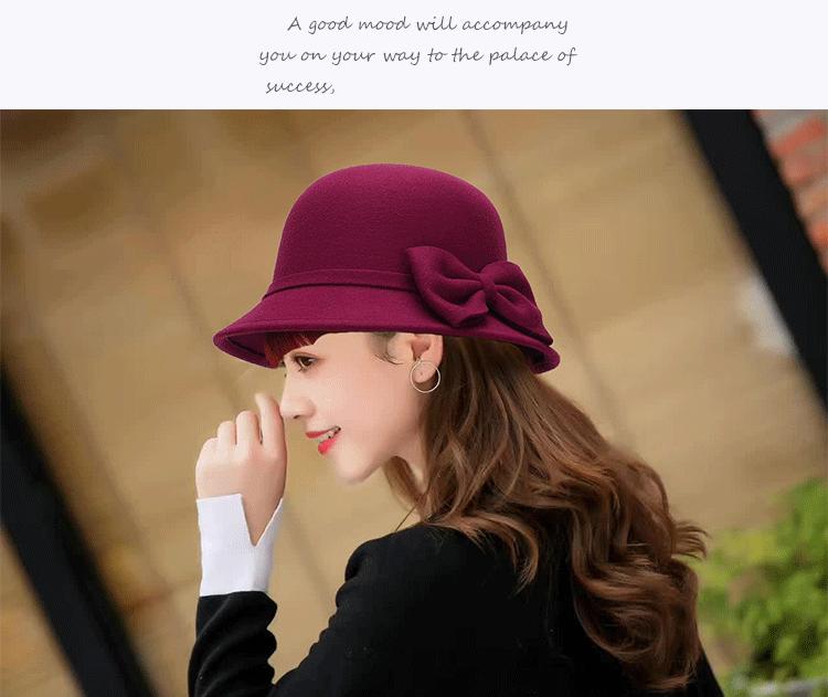 Sombrero de Primavera y Otoño Sombrero de Pescador de Moda para Mujer Combinable Sombrero de Copa con Lazo de Domo Elegante para Mujer Sombrero de Cubeta Británico de Lana