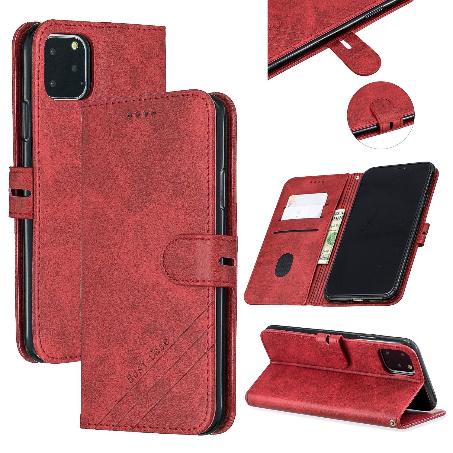 Adecuado para iPhone 16E, funda de cuero 15Pro, funda de cuero con patrón de becerro de color sólido retro, funda de billetera multifuncional 14plus