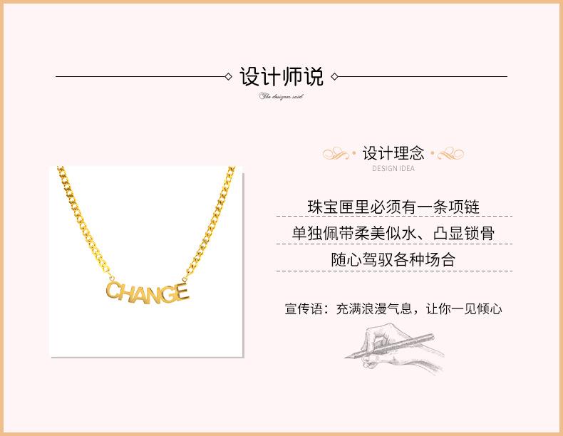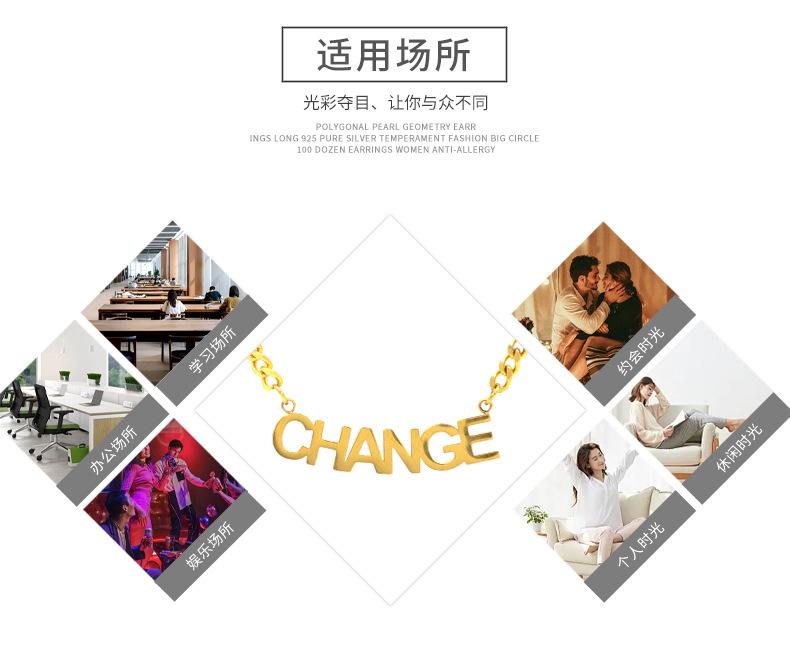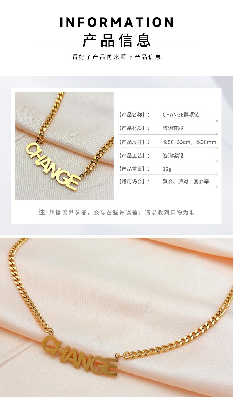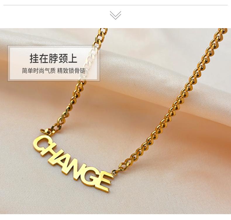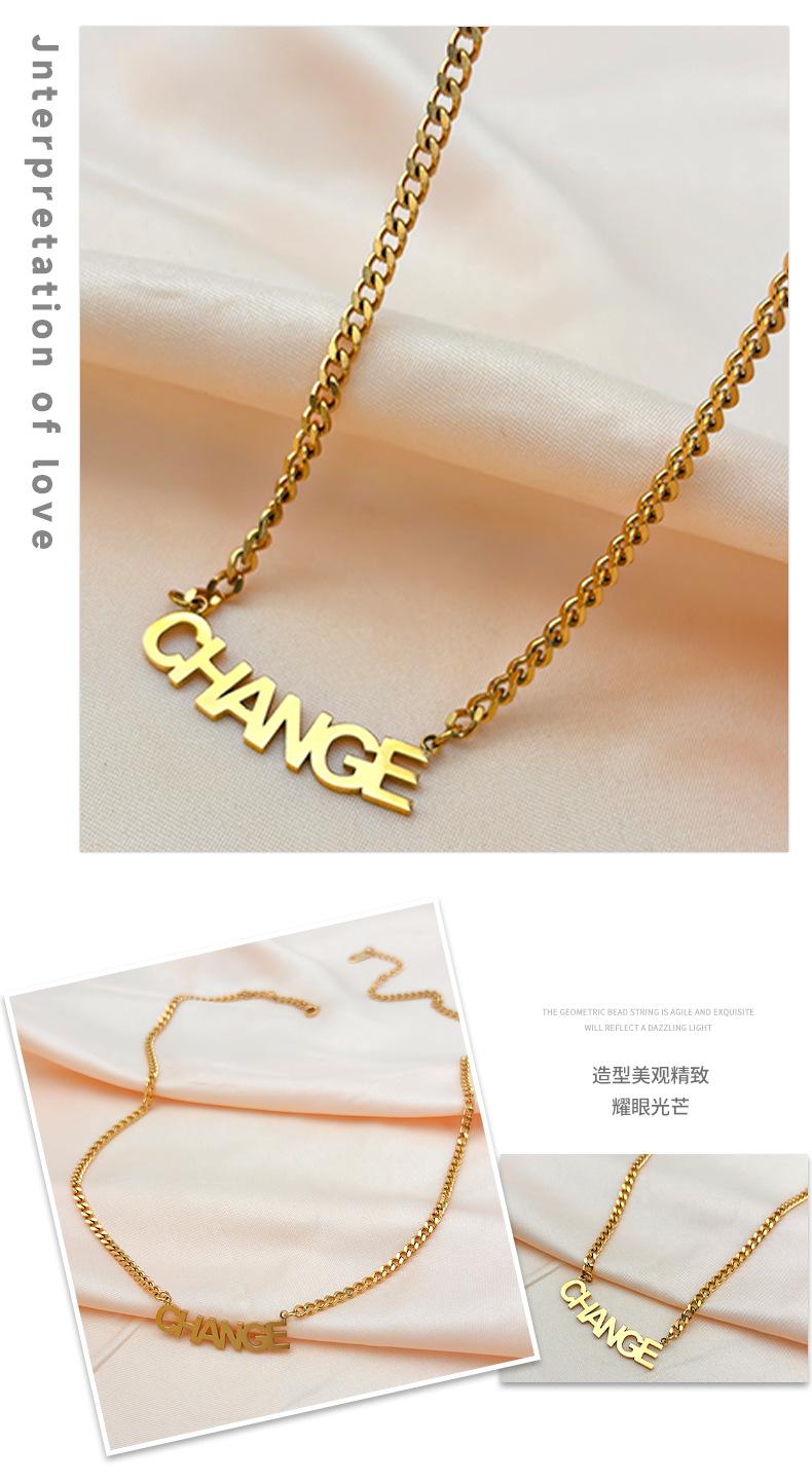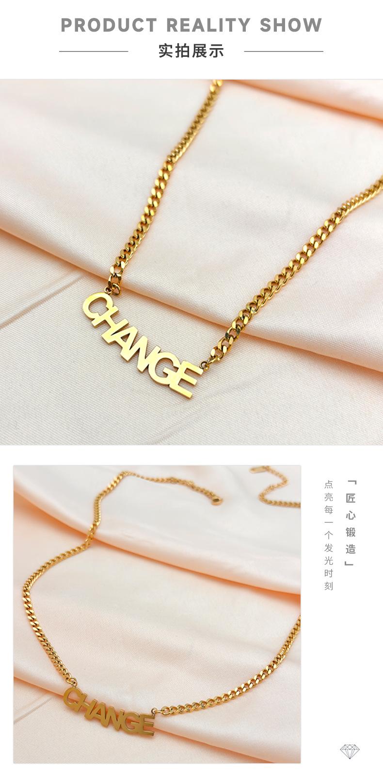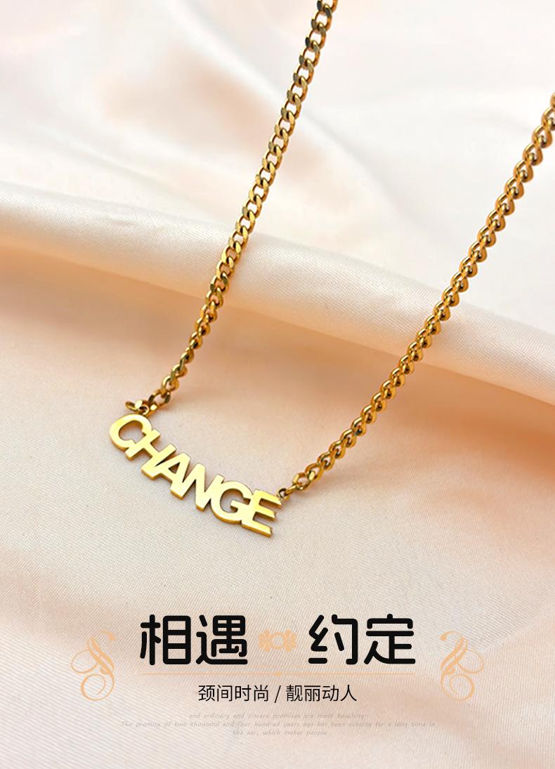 Nuevo collar de verano con letras CHANGE de acero de titanio para hombres y mujeres, combina con todo, estilo europeo y americano, cadena de clavícula con letras en inglés.