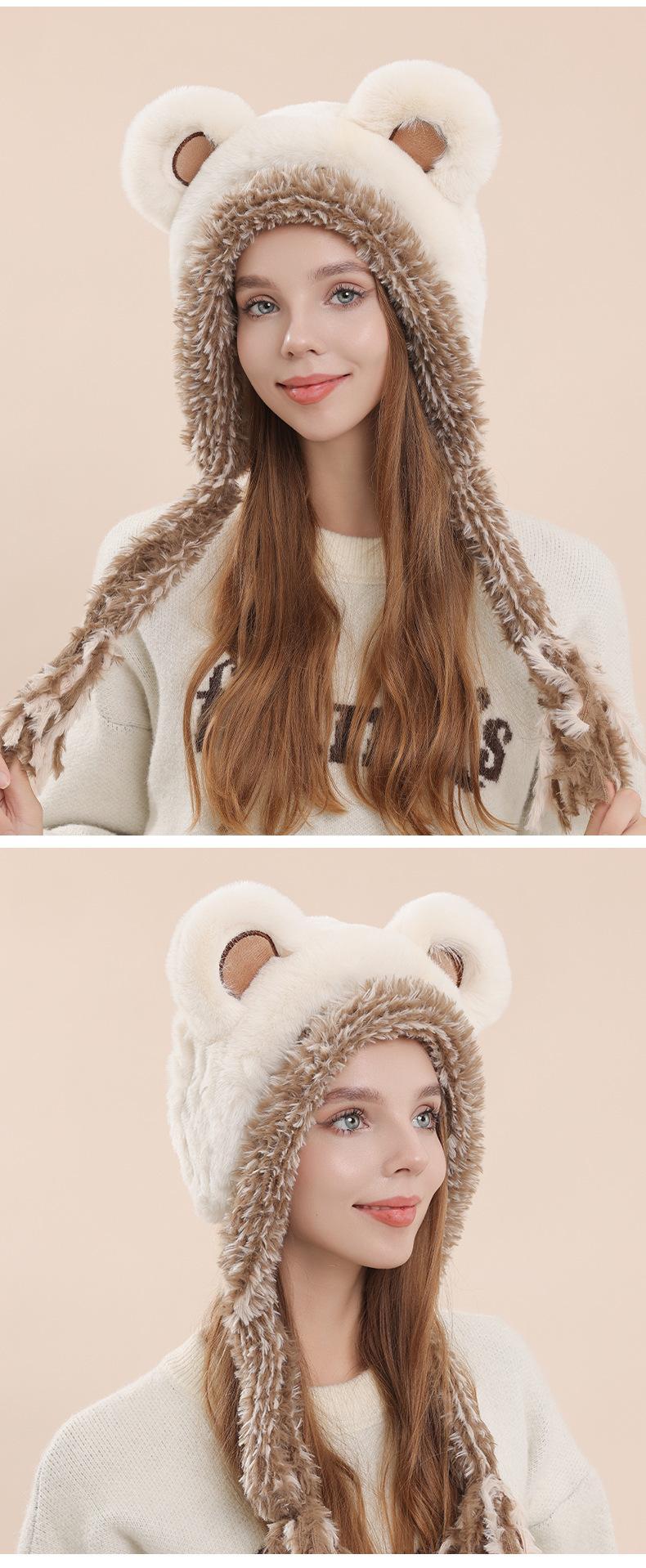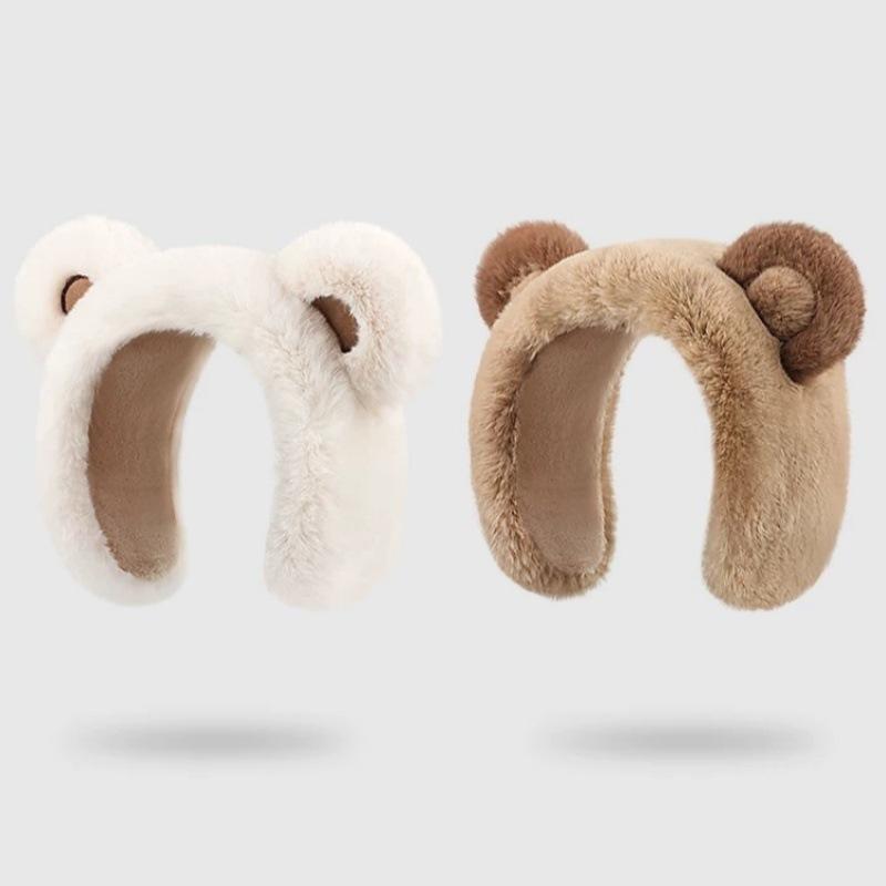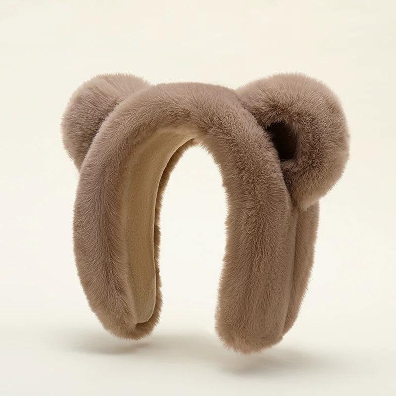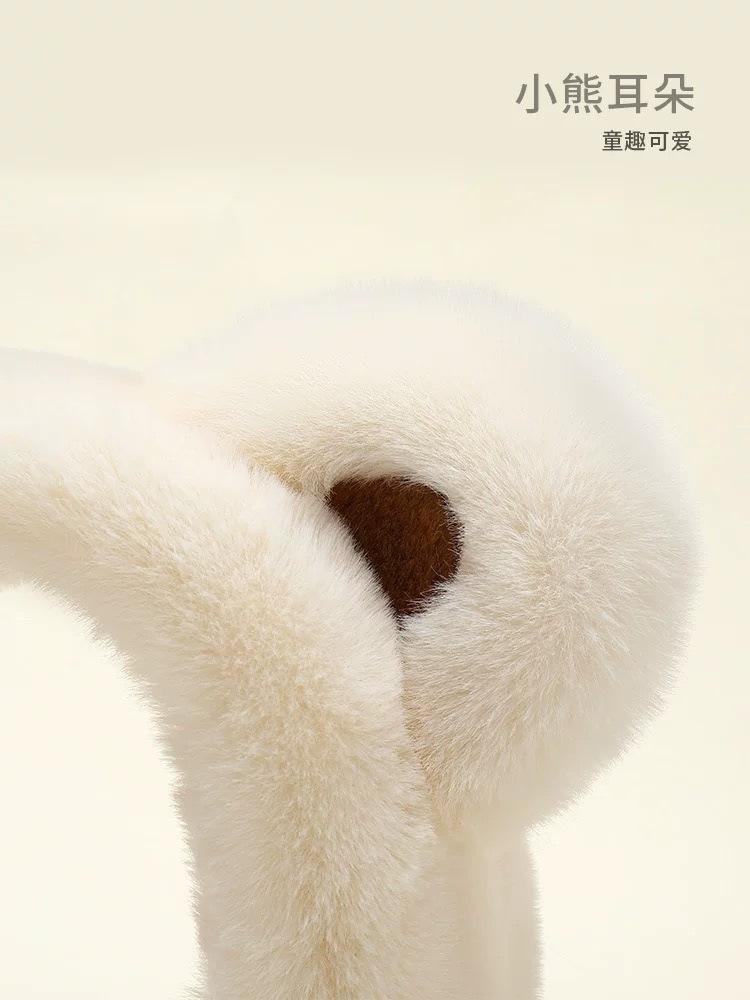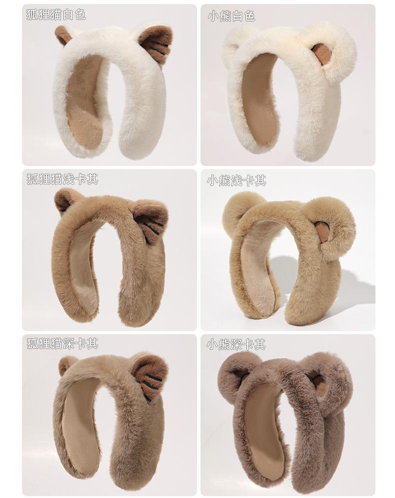 White thickened bear ears cartoon earmuffs, Khaki thickened bear ears cartoon earmuffs