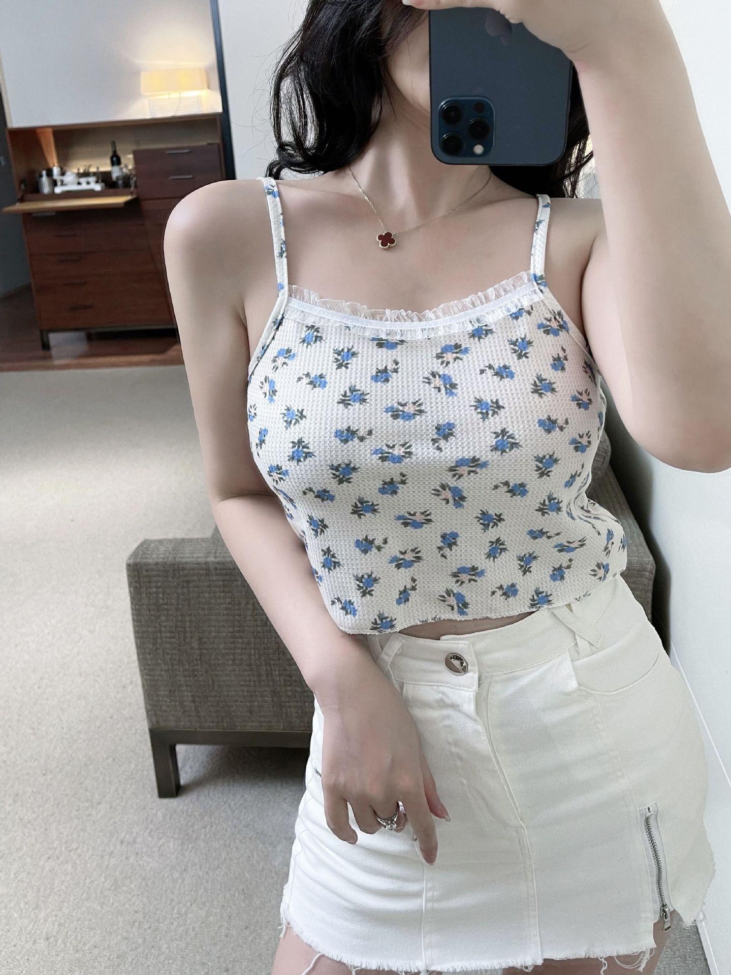Chaleco sin mangas para mujer, moda de verano 2023, con estampado floral, sexy, ajustado y con tirantes.