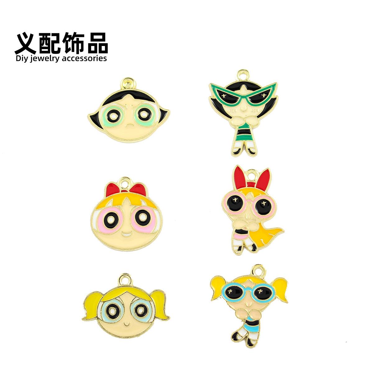 Accesorios de joyería DIY de Las Chicas Superpoderosas Pendientes Colgante Colgante Individual Llavero Colgante Pequeño Pulsera Accesorios de Aleación