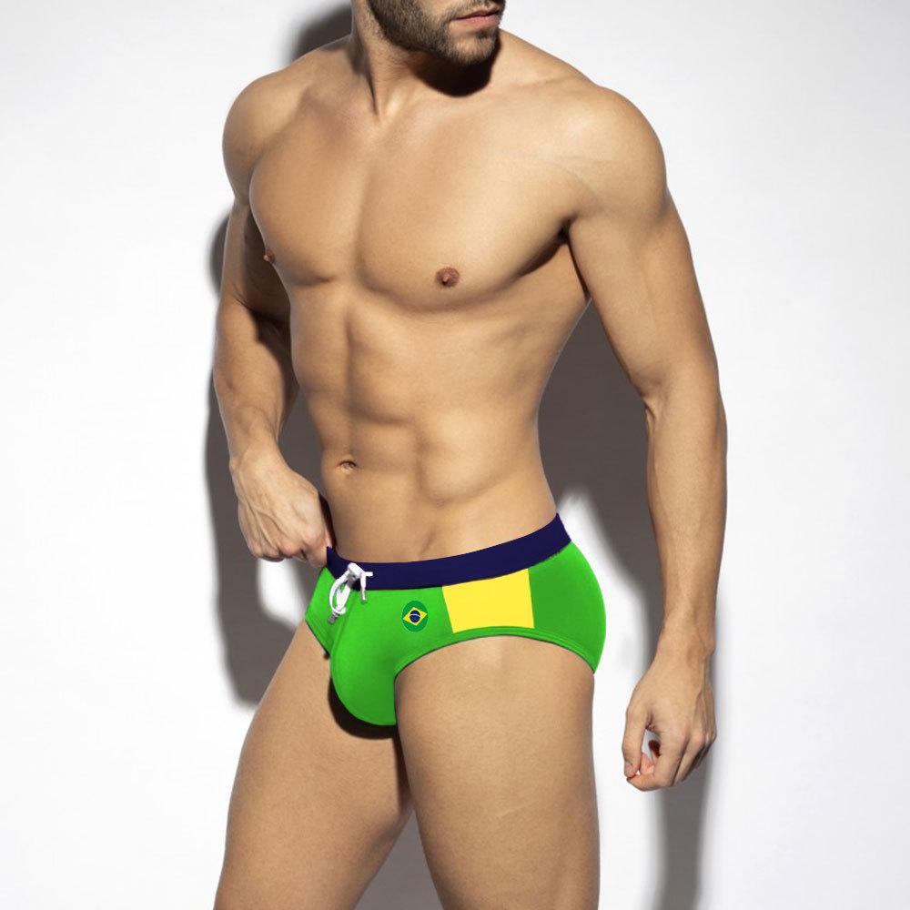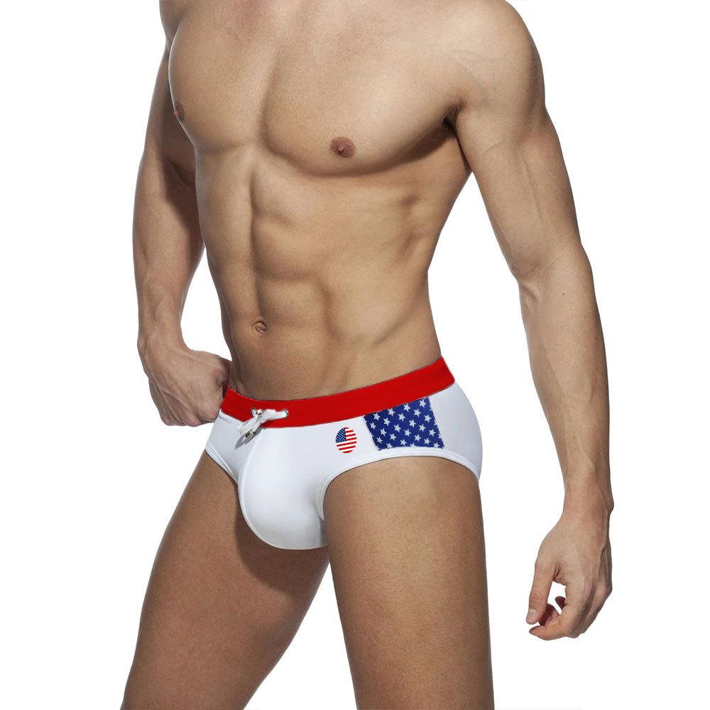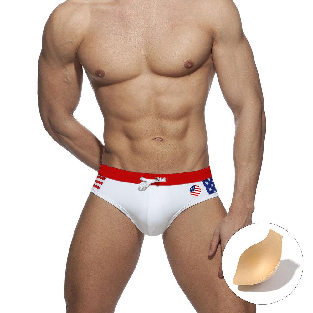 UXH Traje de baño tipo bóxer triangular multicolor con combinación de colores de bandera europea y americana sexy con copa anti-exposición bikini triangular de playa