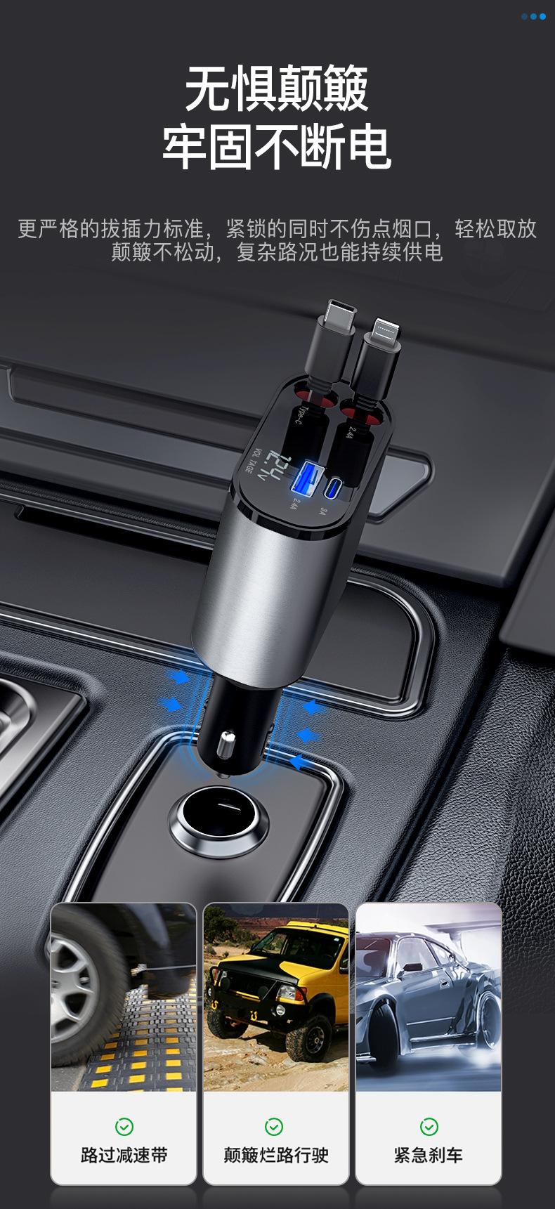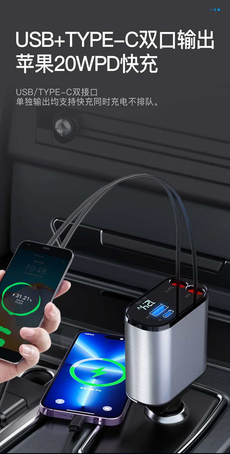 El Nuevo Cargador de Coche Soporta Carga Super Rápida de 100W Carga Flash Cable Retráctil Cuatro En Uno Cargador de Coche Encendedor de Cigarrillos