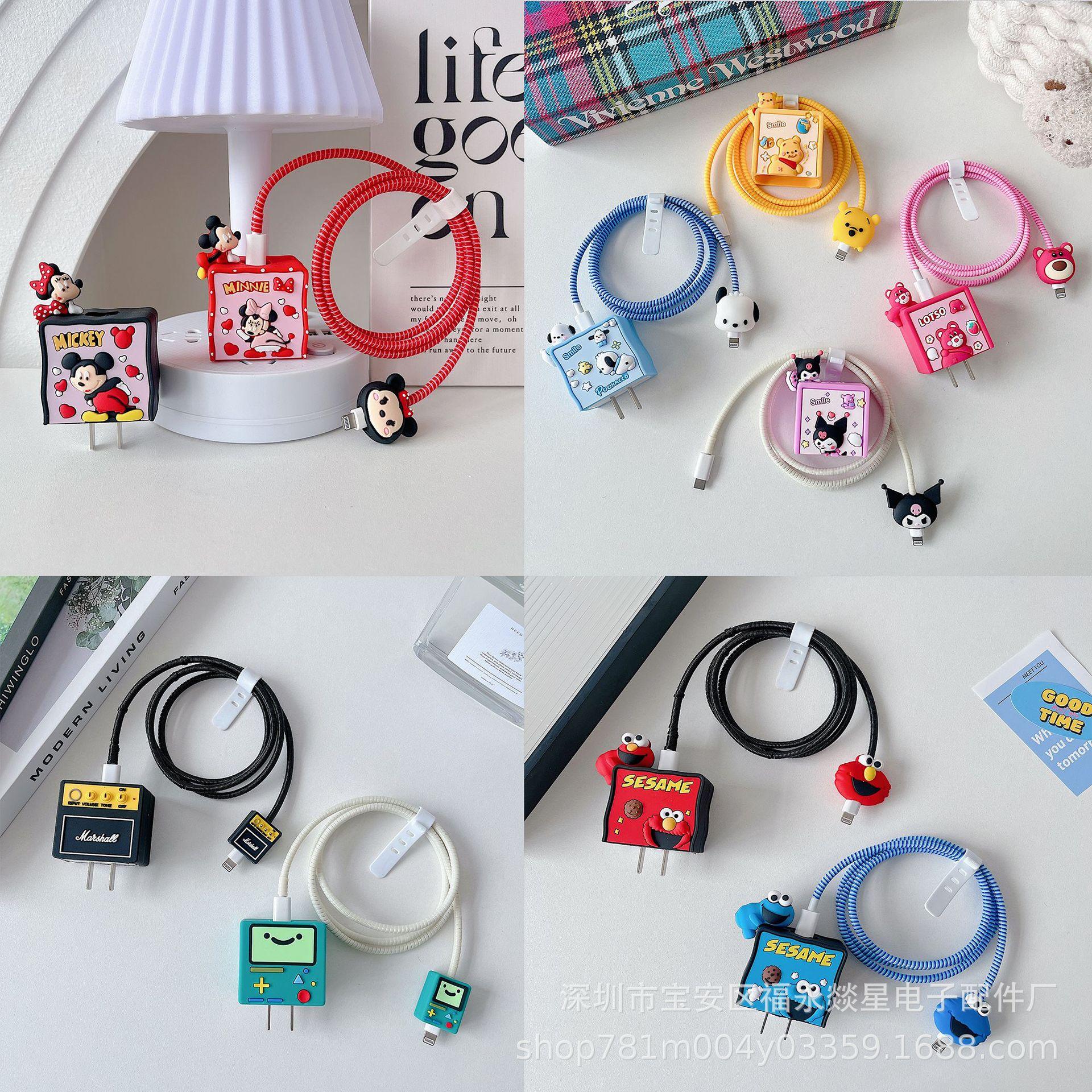 Nueva funda protectora de cargador de dibujos animados adecuada para el cabezal de carga rápida de Apple 18/20w, funda protectora para el cabezal de carga, enrollador