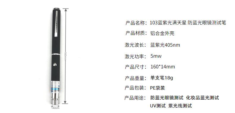 101 Batería Carga USB Láser Azul Púrpura 405Nm 5mW Gafas Antiluz Azul Pluma de Prueba Detección UV