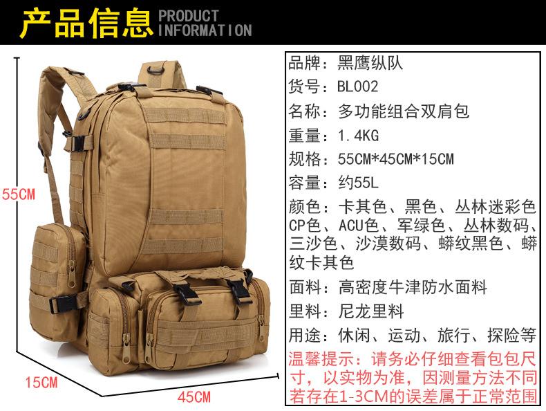 Mochila Combinada de Viaje para Camping Transfronterizo para Hombre de Gran Capacidad Camuflaje Táctica para Montañismo al Aire Libre