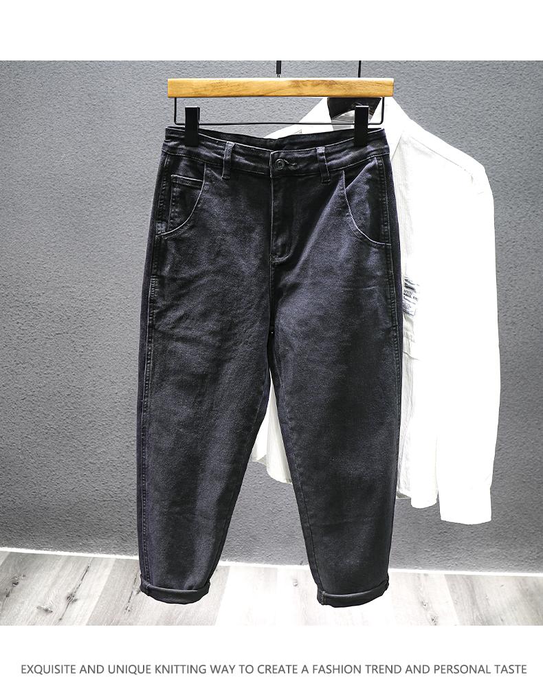 2022 Otoño Nuevo Jeans Negros de Pierna Ancha Holgados Moda Hombre Todo Combinable Casual Pantalones Harem