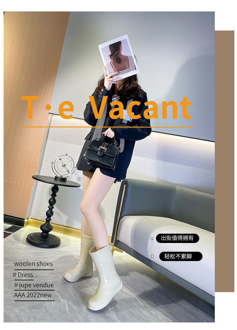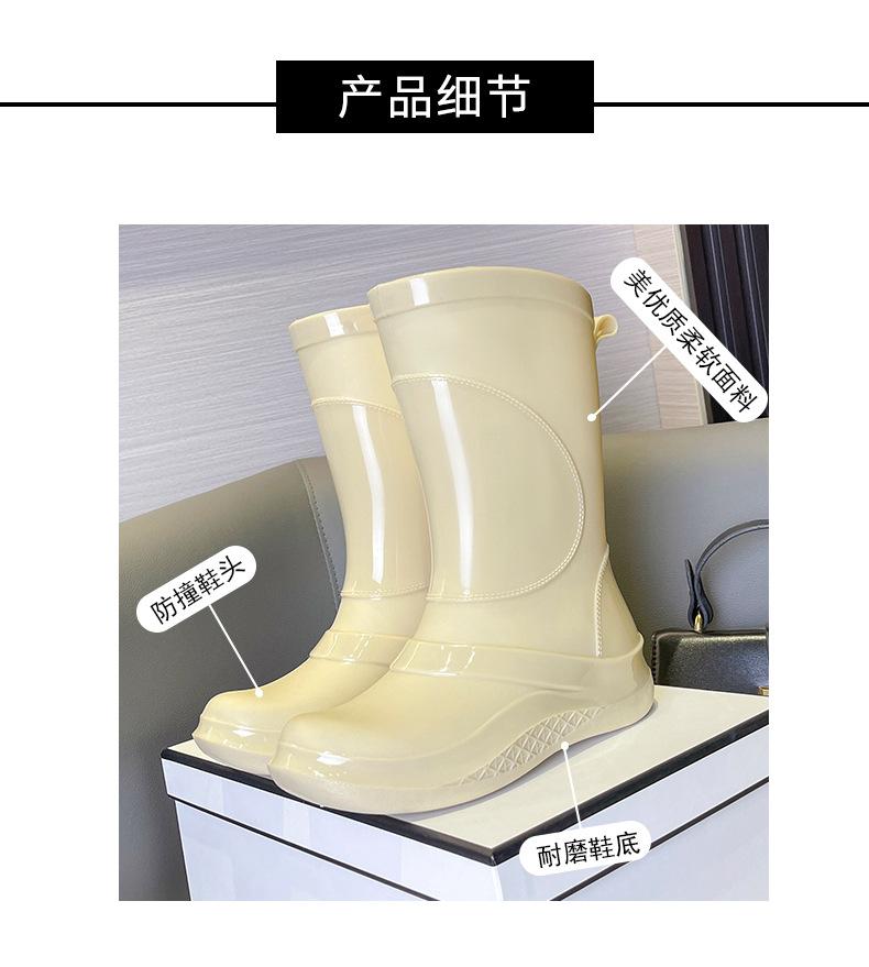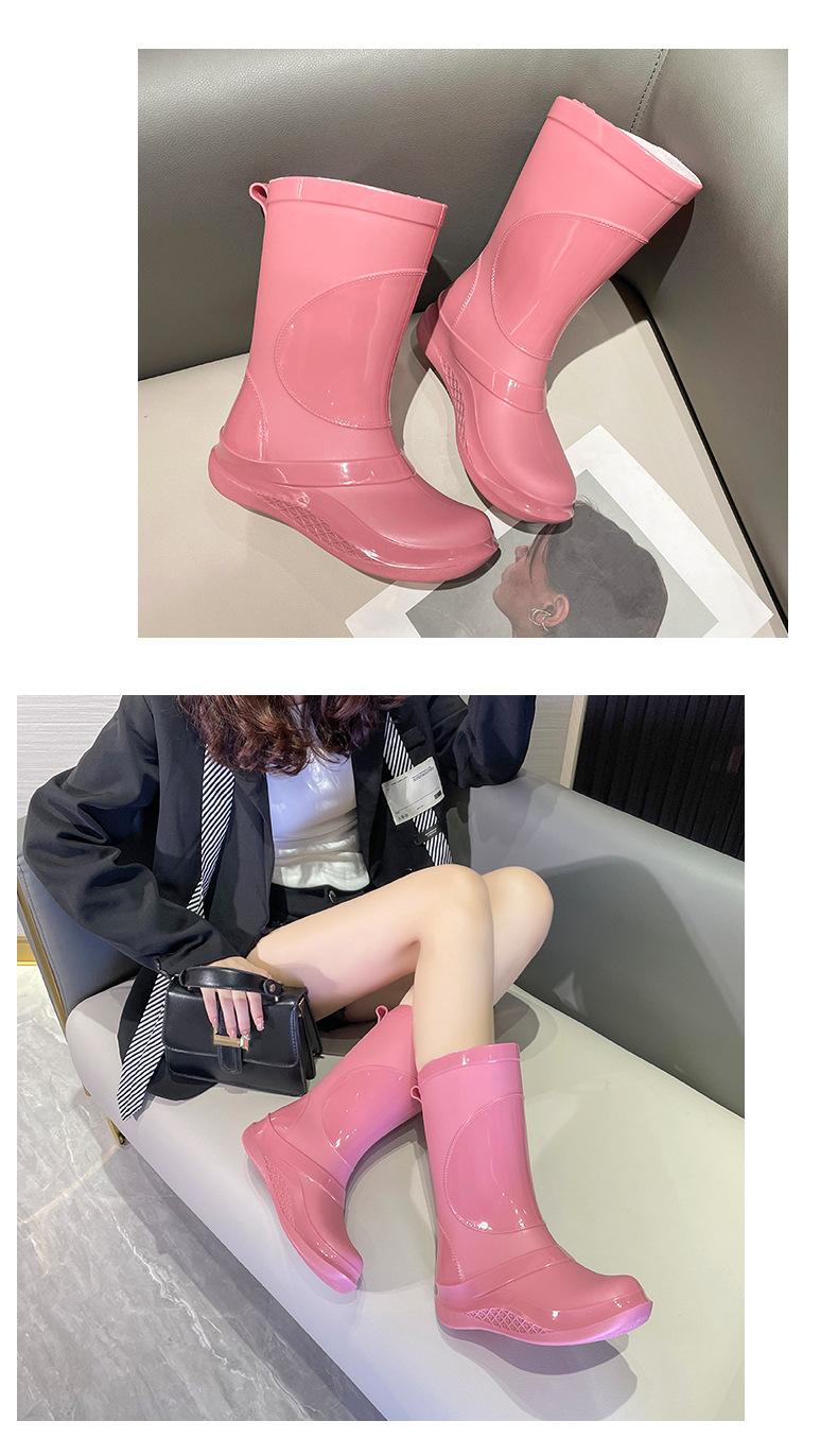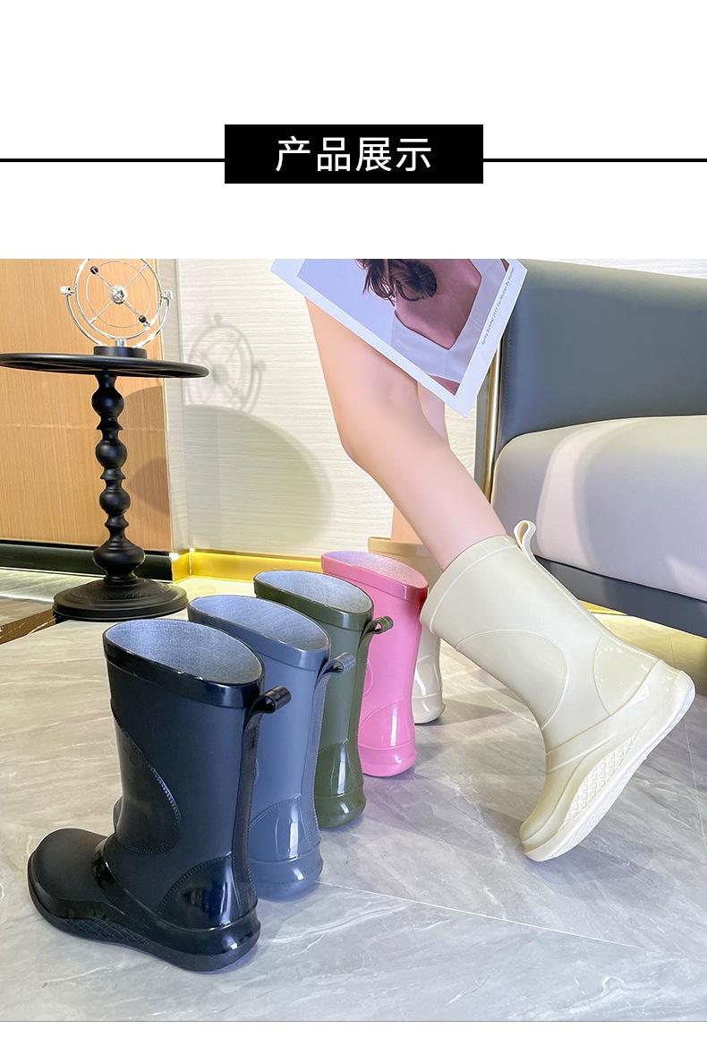 Nuevas botas de lluvia de media caña para mujer, color sólido, antideslizantes, zapatos impermeables de moda, zapatos de goma color fructosa
