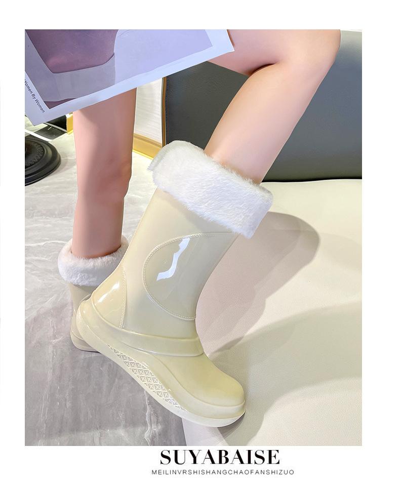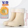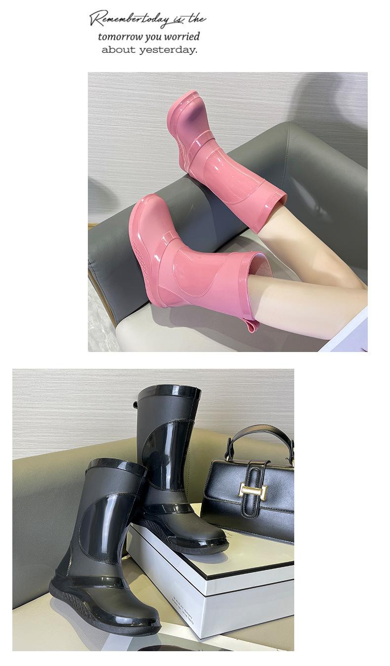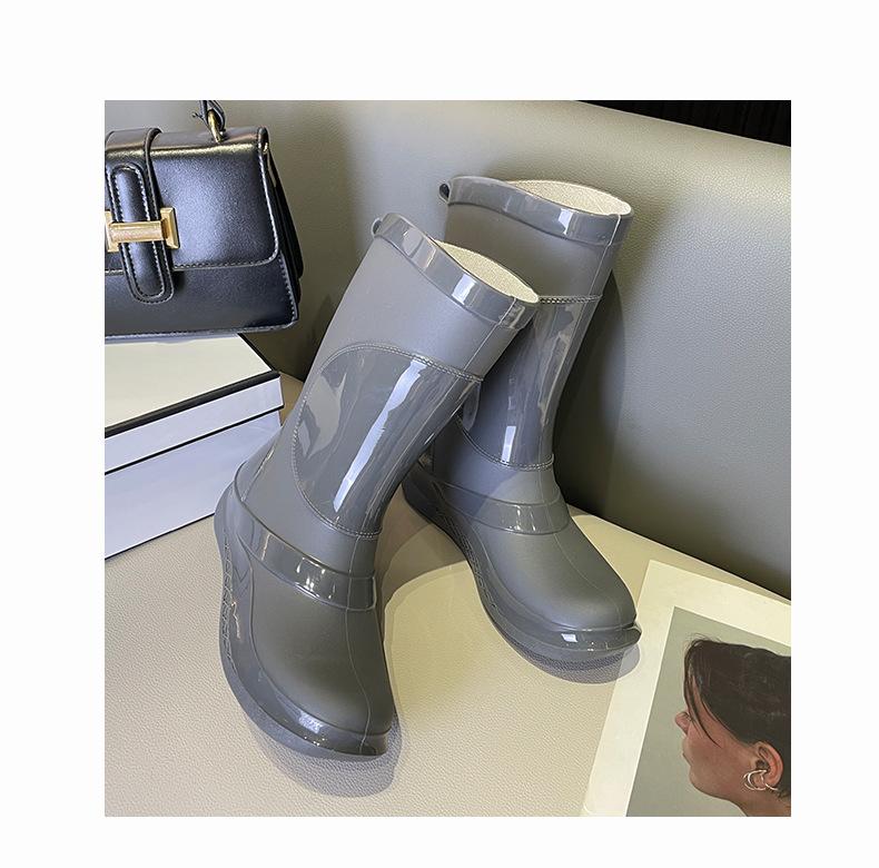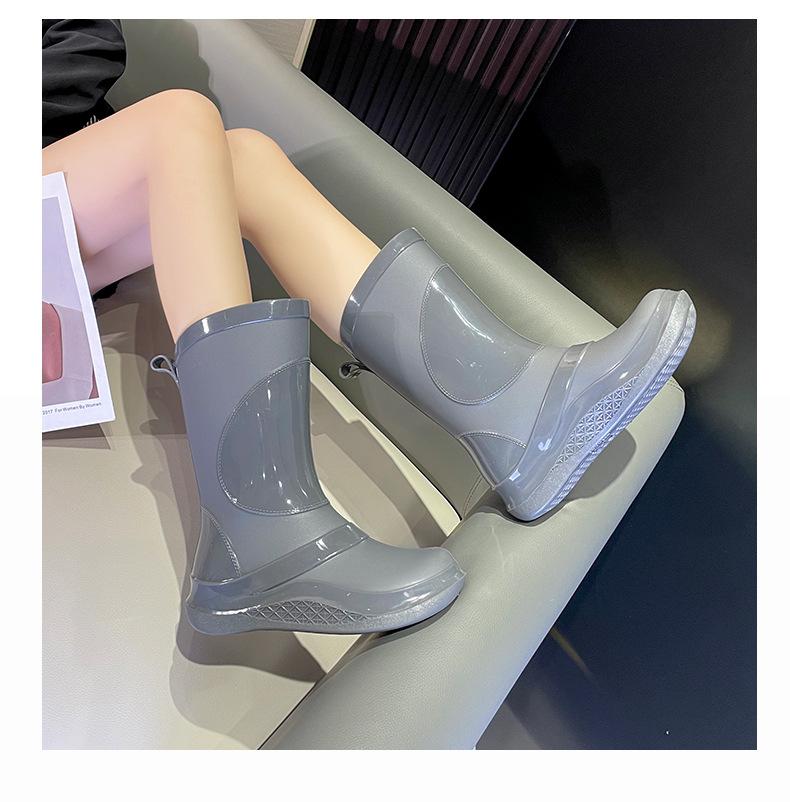 Nuevas botas de lluvia de media caña para mujer, color sólido, antideslizantes, zapatos impermeables de moda, zapatos de goma color fructosa