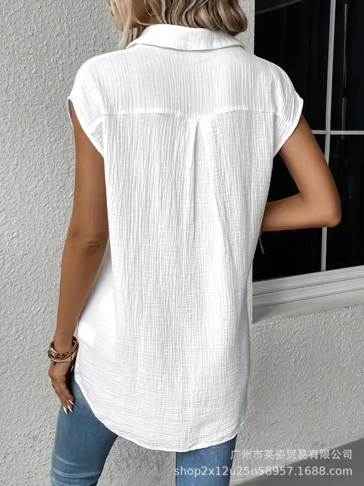 Camisa Popular de Mujer Amazon Transfronterizo Temu Primavera y Verano 2024 Color Puro Botones Casual Manga Corta Ropa de Mujer para Viajar