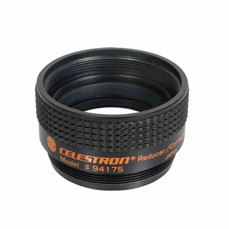 Este accesorio reductor de focal/corrector de campo se puede usar con los telescopios Schmidt-Cassegrain de 5", 8", 9.25", 11" y 14" de Celestron. Este accesorio flexible permite que el telescopio tenga dos relaciones focales sin sacrificar la calidad de la imagen. Este reductor/corrector de focal llevará el C5, C6, C8 y C9.25 a f/6.3, y el C14 a f/7.