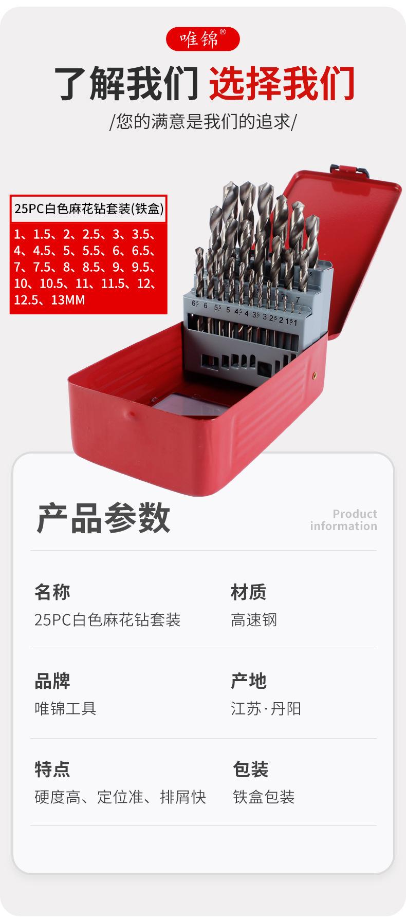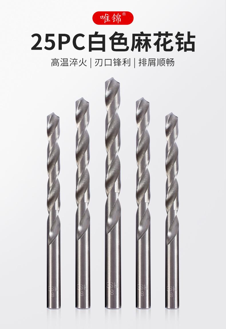 Juego de 25 piezas al por mayor de acero rápido blanco, juego de brocas helicoidales para taladro de mano