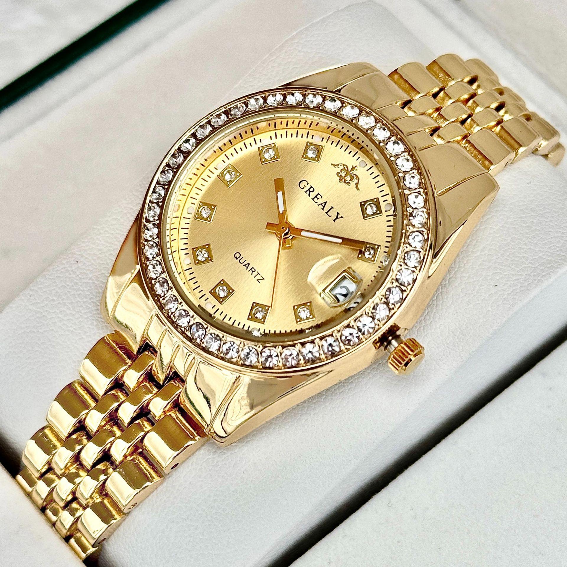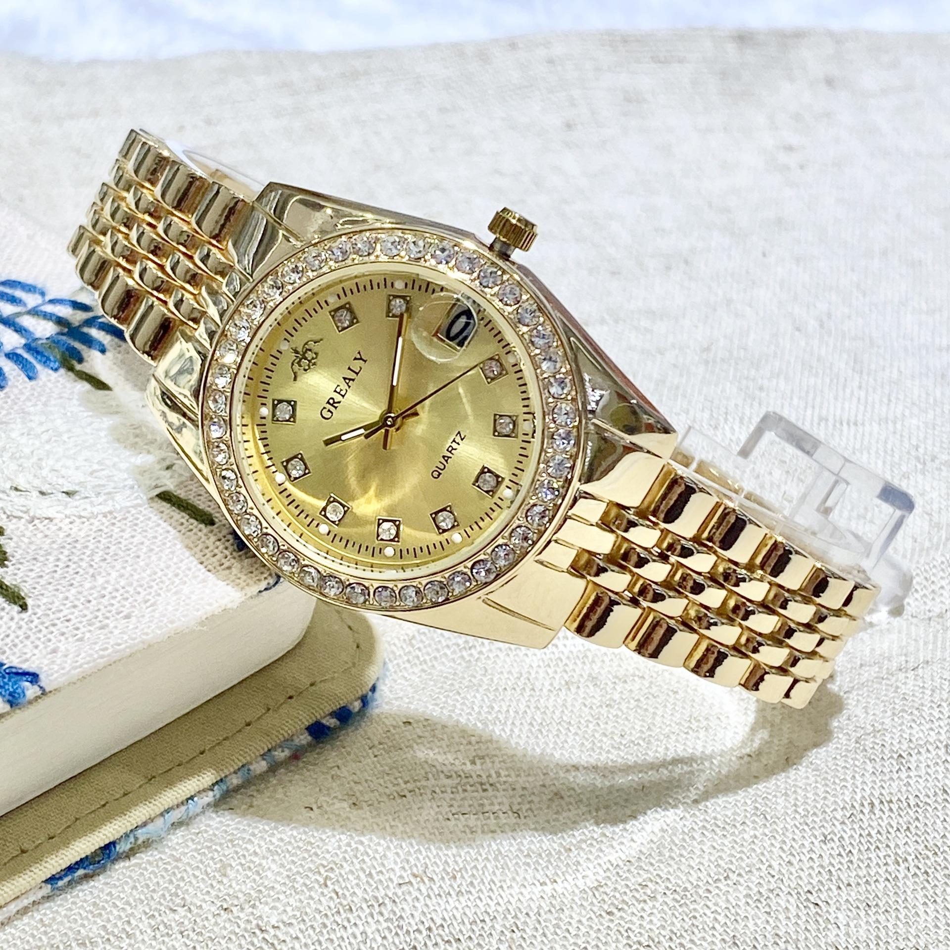 Reloj de Mujer Grealy Popular Transfronterizo Elegante de Madera Resistente al Agua Reloj de Moda Reloj de Cuarzo con Incrustaciones de Diamantes Fabricante Venta al por Mayor