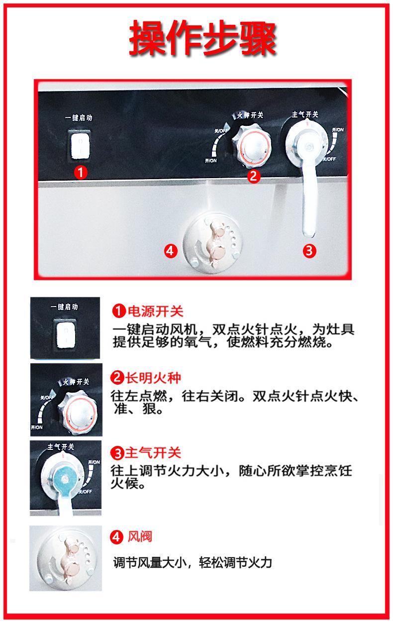 Gas model with flameout protection, double frying and one temperature 1800*800*800 with pot flameout