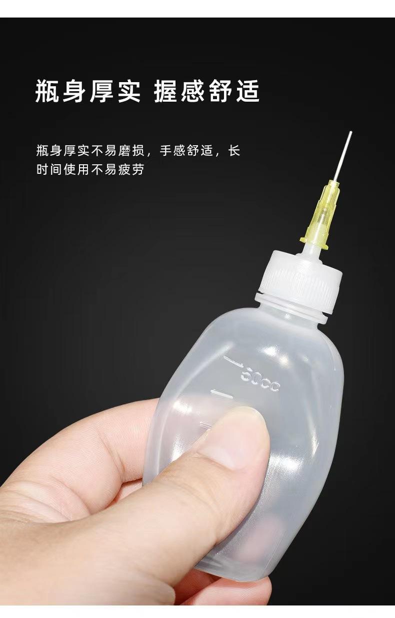 Botella dispensadora industrial con aguja botella de alcohol botella de agua de colofonia botella de flujo botella de epoxi bote pequeño de aceite 50cc