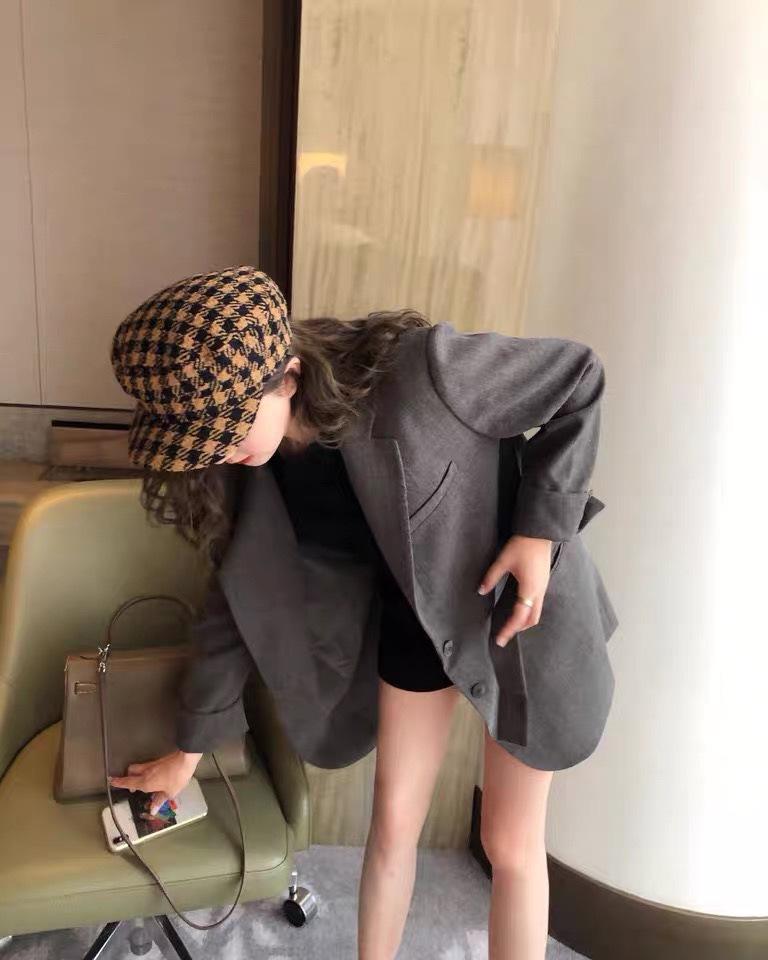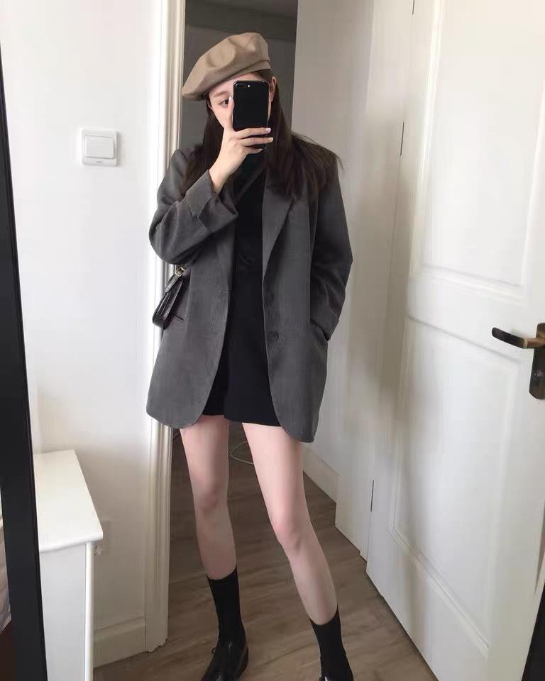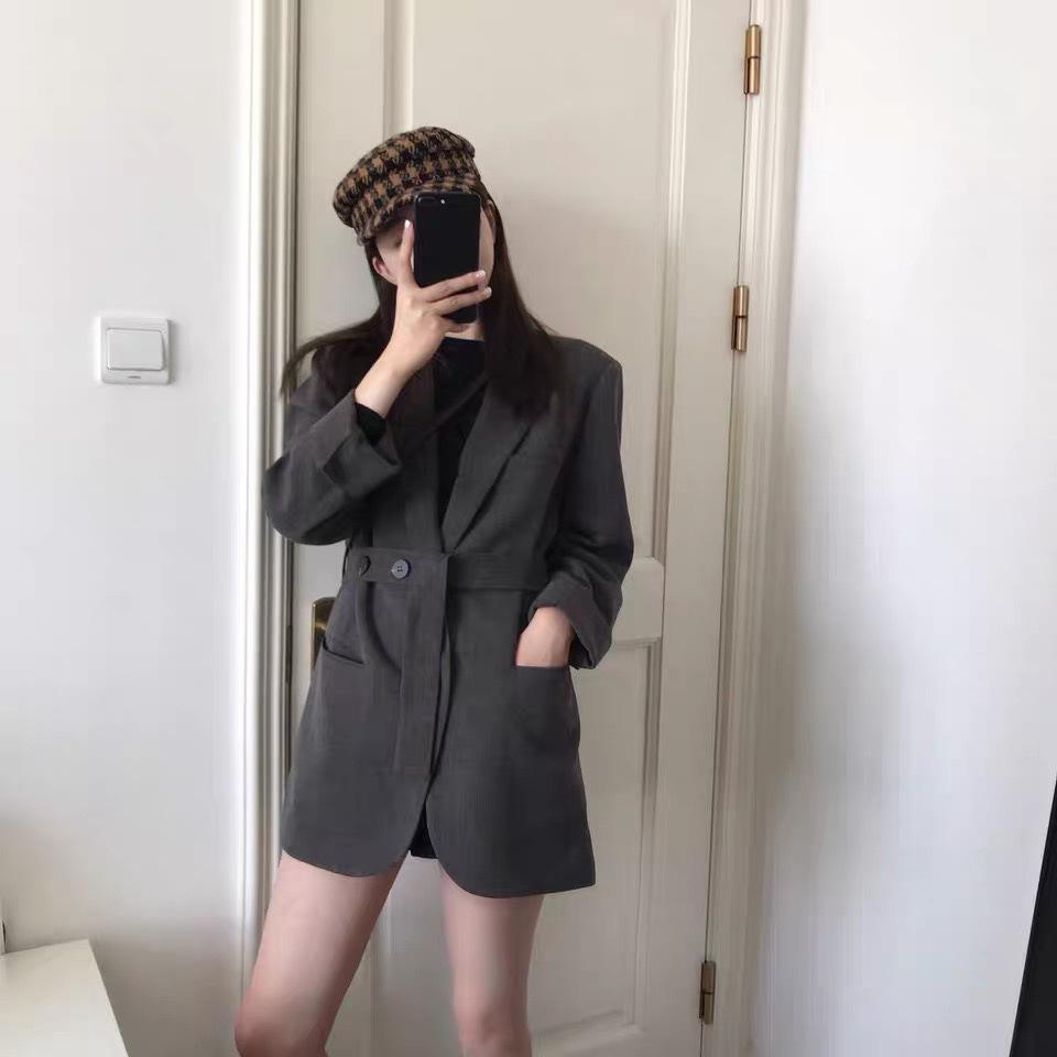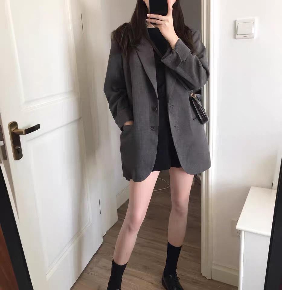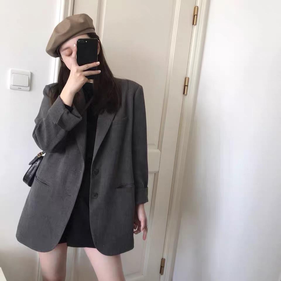Chaqueta de Traje de Primavera Gris Oscuro Diseño Nicho Estilo Hong Kong Retro Suelto Estilo Coreano Traje Casual