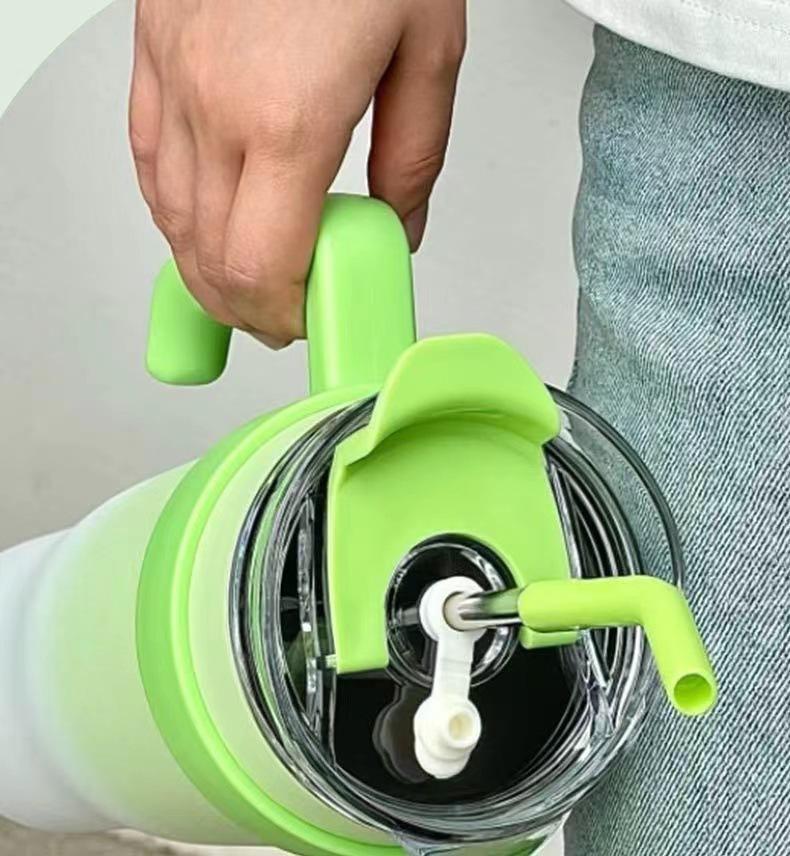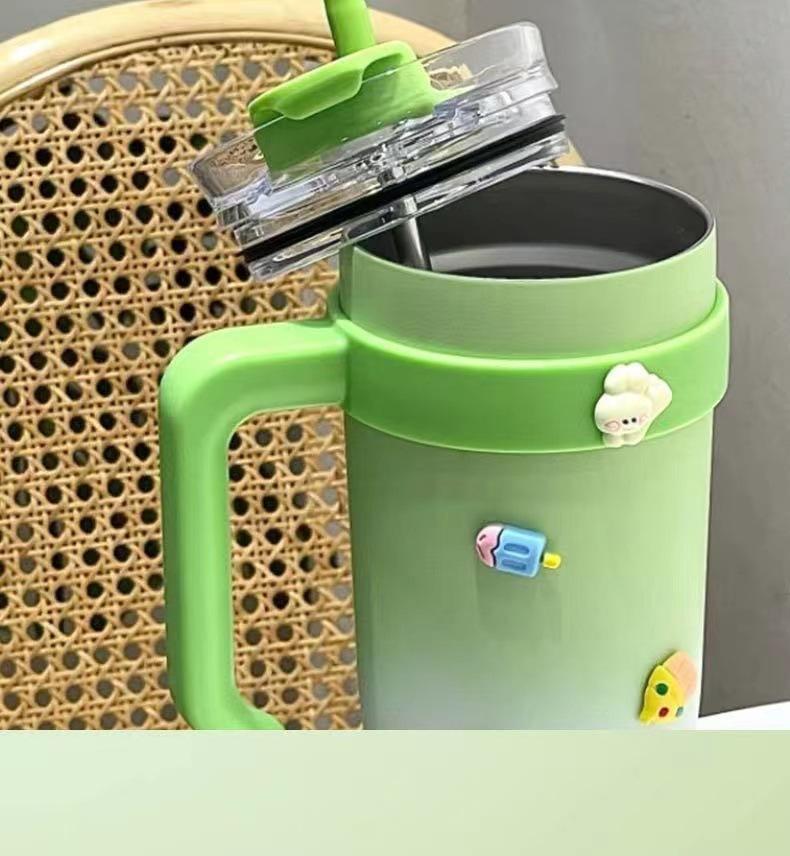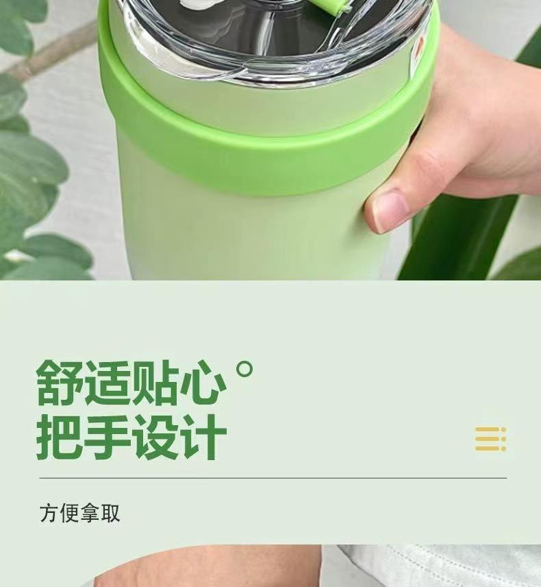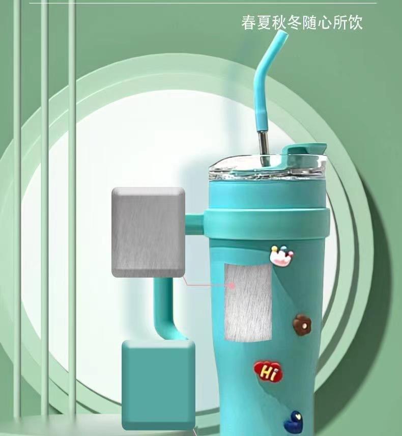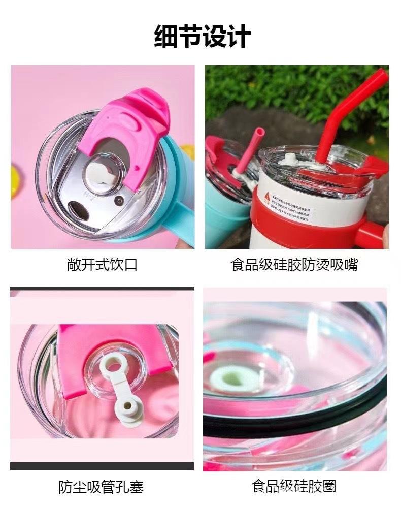 Nuevo Vaso de Doble Capa con Aislamiento al Vacío, Vaso con Asa y Popote de Gran Capacidad, Vaso para Coche de Acero Inoxidable 304 de Aspecto Elegante
