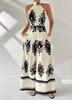 2024 Amazon Transfronterizo Verano Ropa Europea y Americana Ins Nueva Moda Cuello Redondo Cordones Ajustado Mono Estampado