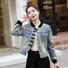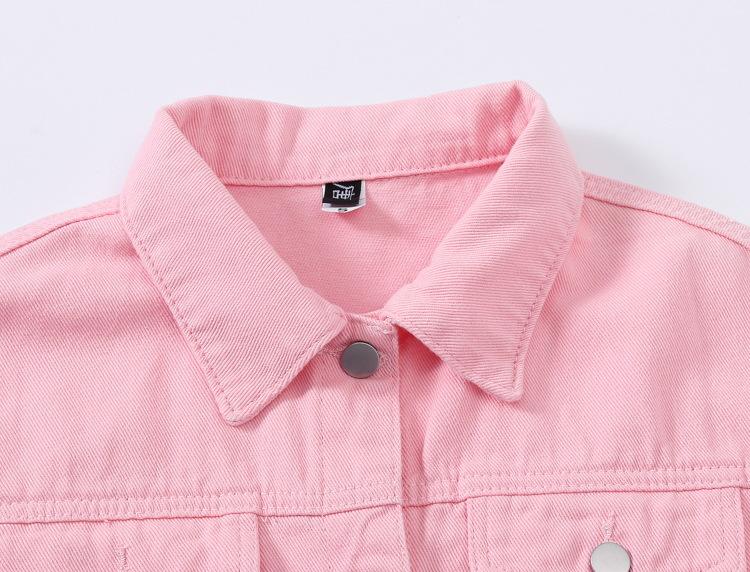 Chaqueta de mezclilla rosa de primavera, nuevo color, para mujer, corta, estilo coreano, holgada, bf, manga larga, talla grande, top casual