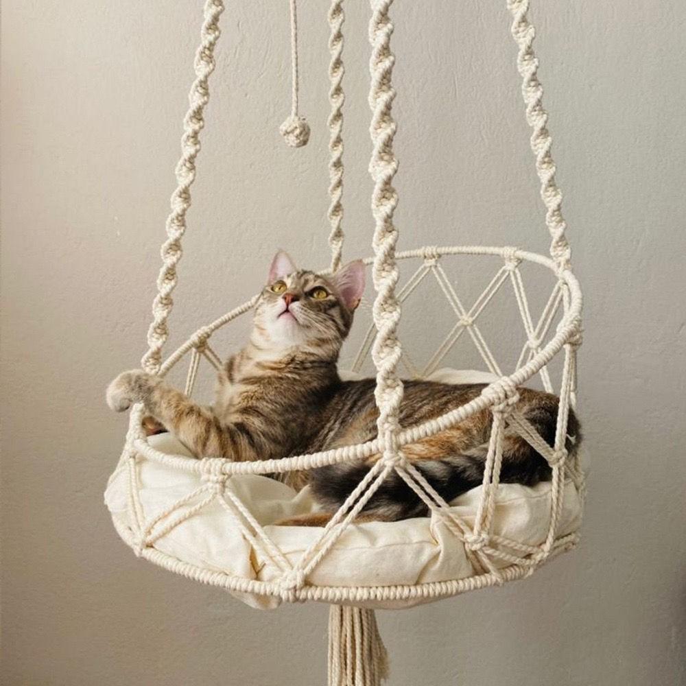 Cesta colgante de red para mascotas de Amazon, hamaca tipo nido para gatos, estilo bohemio