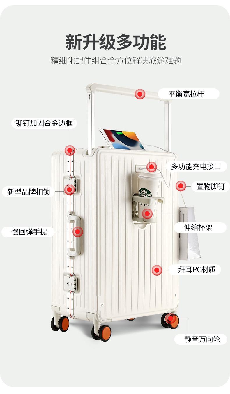 Equipaje Trolley Ancho Esmerilado Resistente a Rayones Trolley para Mujer Multifuncional 24 pulgadas Gran Capacidad Contraseña Maleta de Viaje
