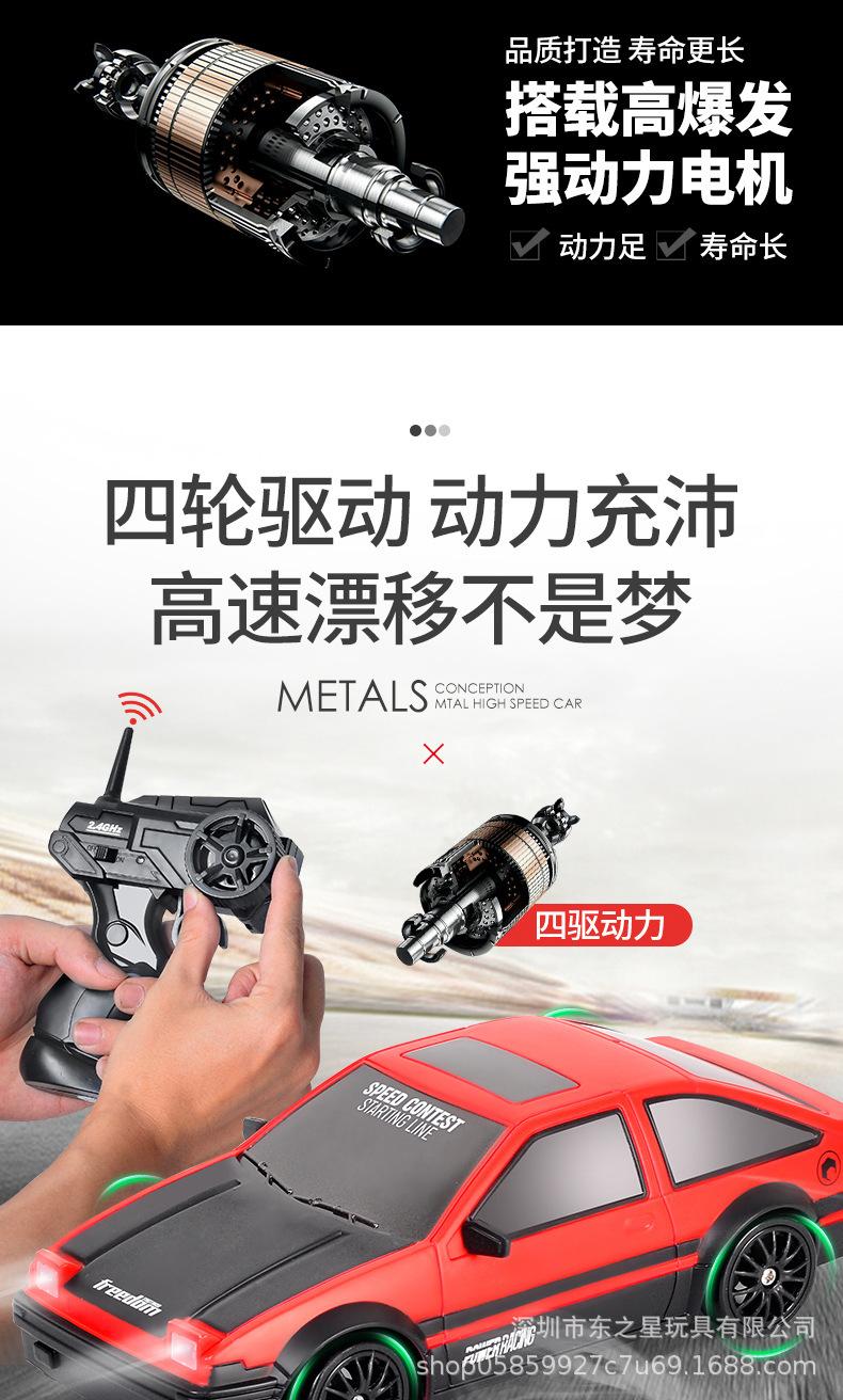 \Nombre del producto: Coche de control remoto RC de alta velocidad con tracción en las cuatro ruedas 1:24 transfronterizo, coche de carreras de derrape AE86 de simulación con control remoto eléctrico 2.4G, juguete