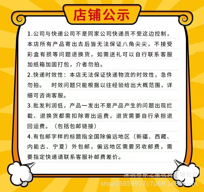 ④En cuanto a la calidad, nuestra tienda prioriza la rentabilidad, y los juguetes económicos tienen bajos beneficios. Puede haber impresiones imprecisas, pequeñas manchas, extrusión de la caja de color y otros pequeños defectos que no afectarán el uso normal de los juguetes. Por favor, haga su pedido si lo acepta. Garantizamos la calidad y el embalaje de los productos en el momento de la entrega, pero como no podemos evitar pérdidas durante el transporte, si se producen pérdidas inesperadas, debemos asumirlas y negociar el método de manipulación. Por favor, comprenda. Si la caja de embalaje está dañada, puede contactar con el servicio de atención al cliente para abonar los gastos de envío y le reenviaremos la caja de color sin coste alguno.
