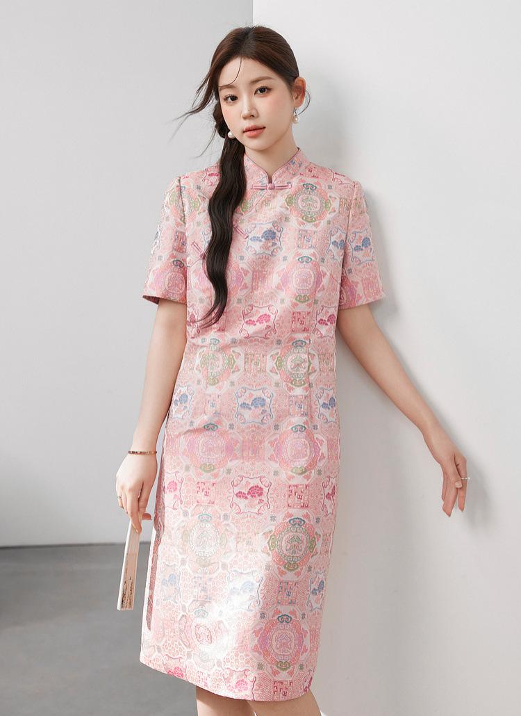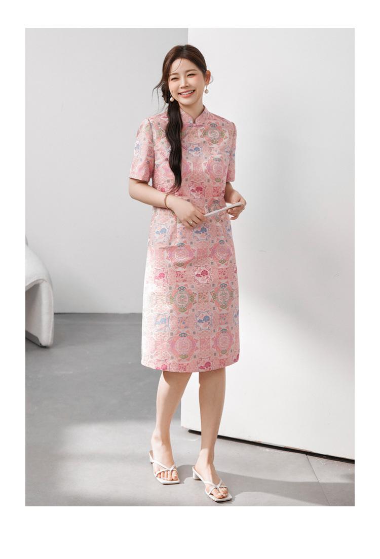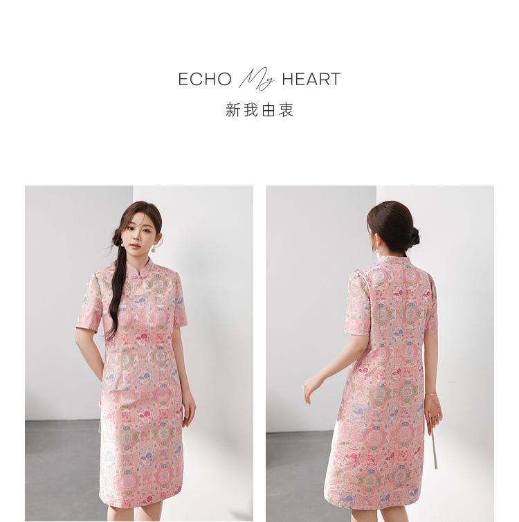 Nuevo Cheongsam Mejorado de Estilo Chino Slim Show Talla Grande para Mujer Vestido Retro con Textura Jacquard Chubby mm2024 Verano Nueva Llegada