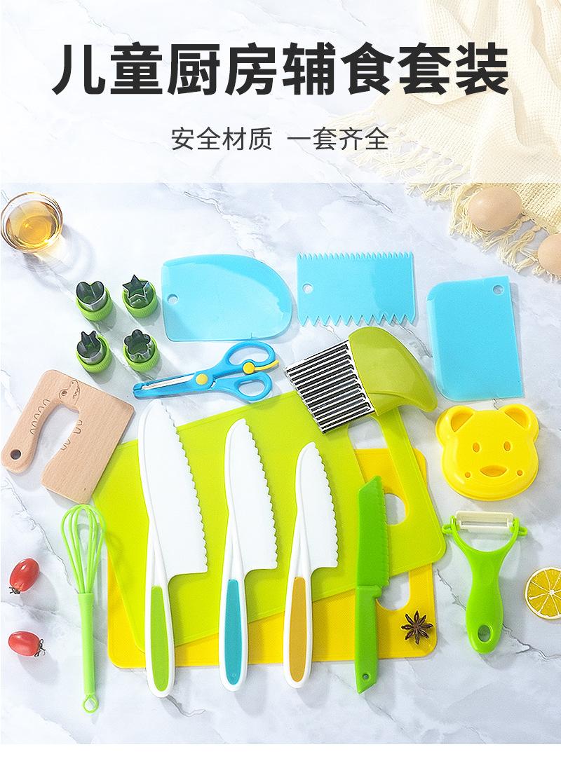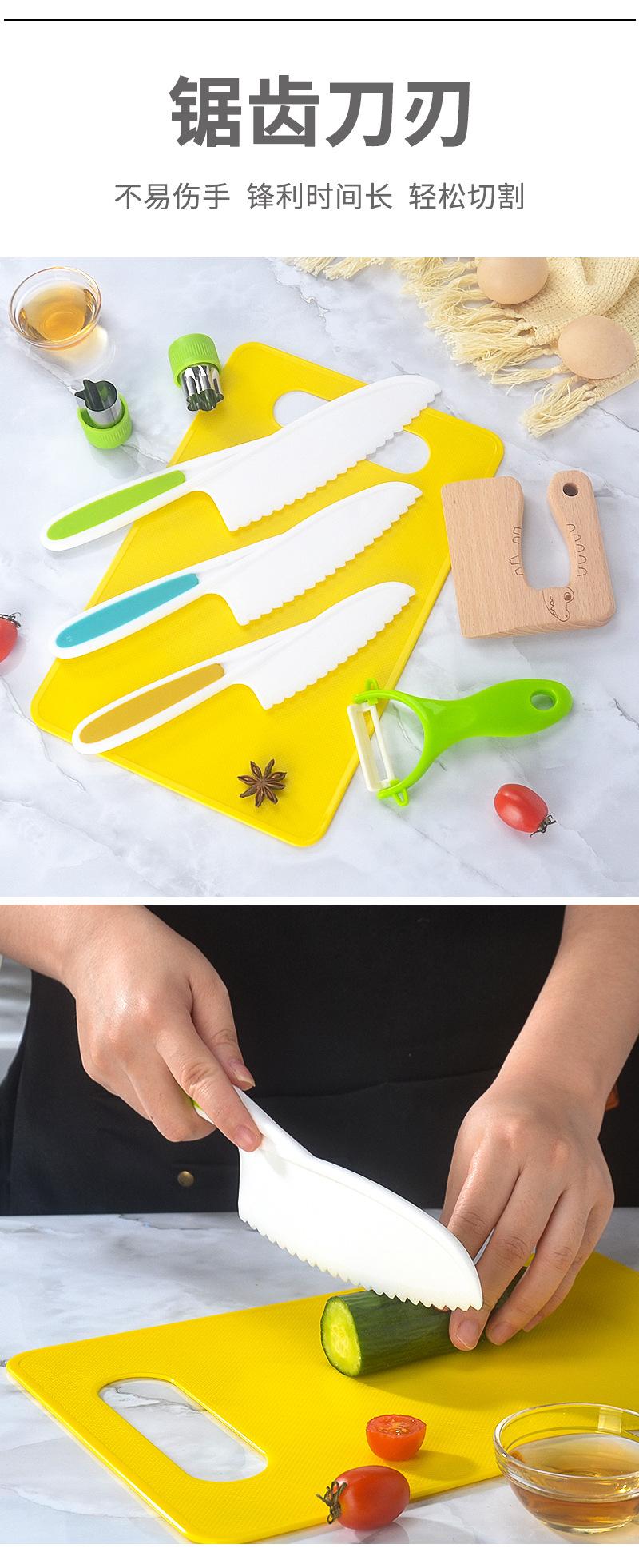 Juego de cuchillo de fruta de plástico para niños cuchillo de diente de sierra corte de verduras soporte para pastel de cumpleaños cuchillo de juguete juego de cuchillos regalo mayoreo